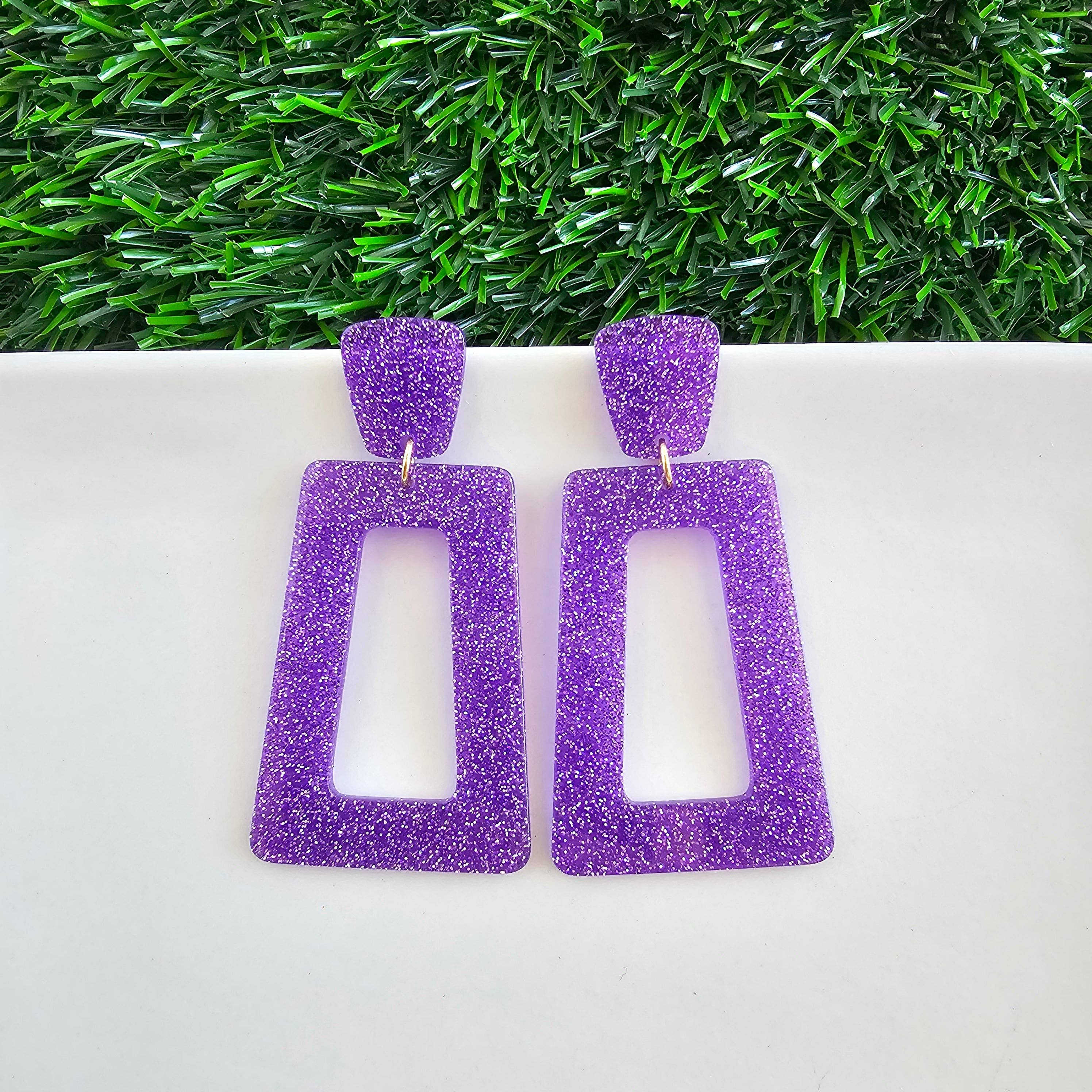 Get ready to celebrate in style with the Mardi Gras Jill earrings! These eye-catching acrylic dangles feature a shimmering gold lamé top paired with cascading purple, green, and gold glitter accents in varying textures. Perfect for Mardi Gras festivities or whenever you want to bring the party vibes! Details: -Hypoallergenic acrylic construction -Nickel-free hardware for sensitive ears -Mixed texture glitter details in purple, green, and gold -Lightweight and comfortable for all-day wear Make a Statement this Mardi Gras!