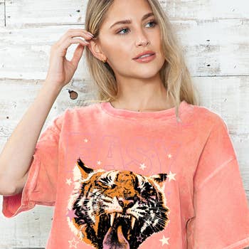 How dare you look so cute throwin' shade in those sunnies! Easy Tiger! Machine wash okay. To maintain quality of the print - we recommend washing garment inside out and avoid the use of liquid fabric softeners. Designs original and owned by Pink House Consulting, Pink House on River Road.