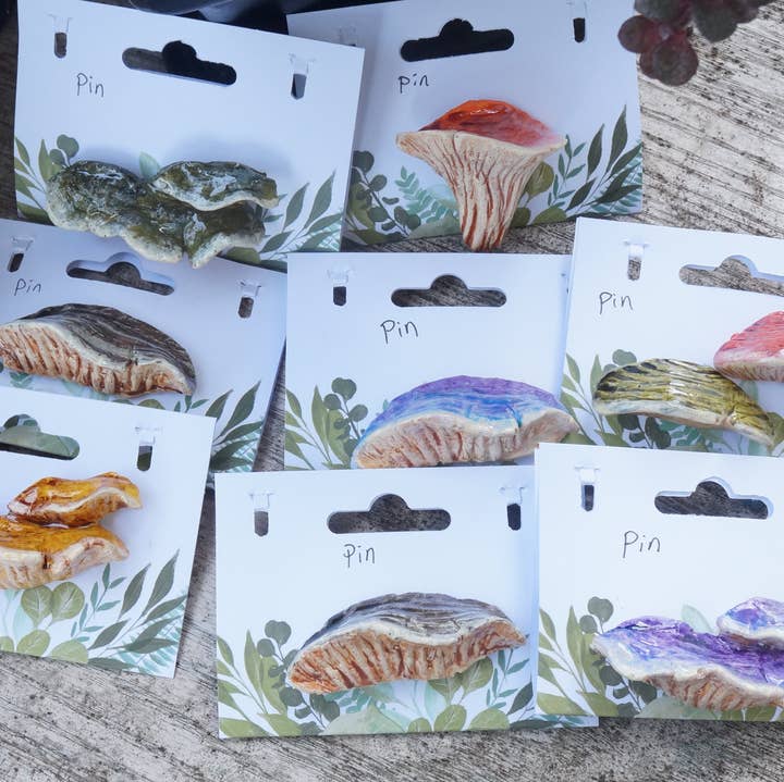 Mushrooms are carved balsa wood and hand painted by me. Each one will have a slight difference in color or splatters because they are hand painted, hung by a metal hoop with a hemp cord string. Not meant to be re-branded. Please do not take credit for the creation of my items. You have permission to sell them, but not claim you were the creator. The colors are at random as to what customers will get but I try to include at least 1 of each color variation in an order. They range from redcaps to white or yellow and brown cap mushrooms. They are sealed in a light matte varnish for protection.