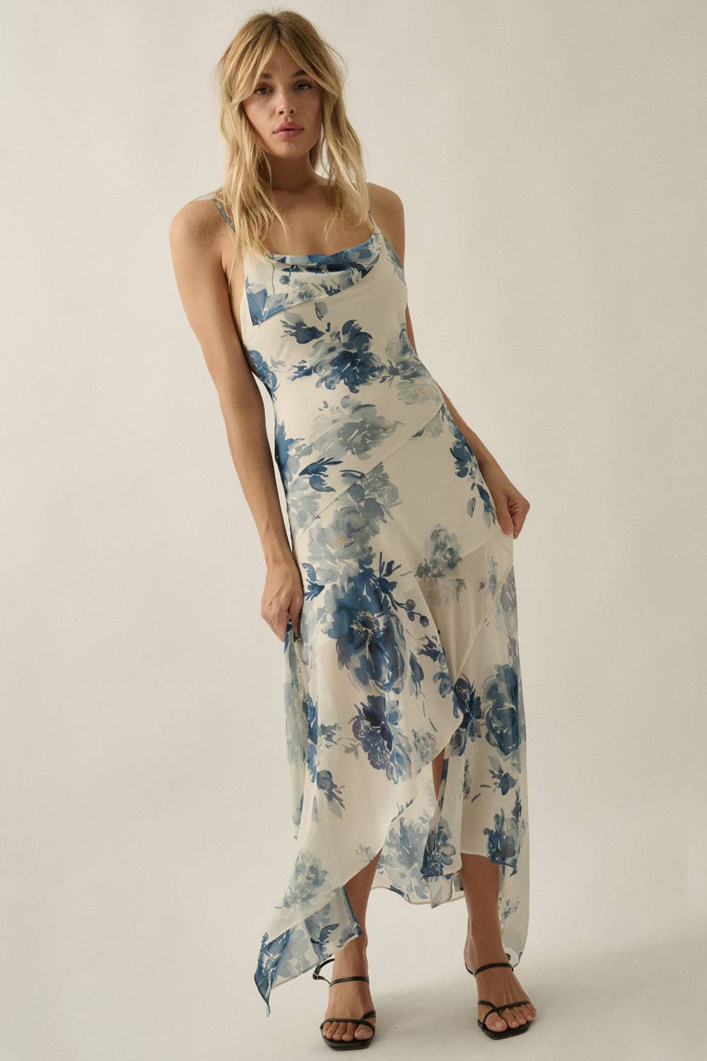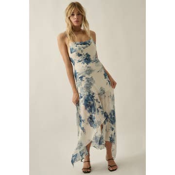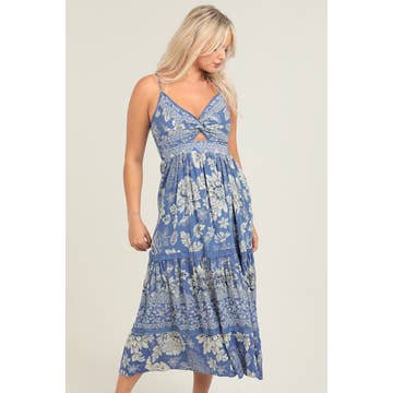 Tie-dye Print Ruffled Woven Long Dress - Adjustable shoulder straps - V-neckline - Smocked band waist - Ruffled hemline