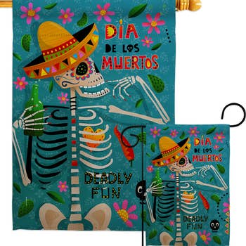 Soft to the touch garden flag measures 12-inches by 18-inches and is decorated with vibrant graphics. Perfect outside in the garden or flower bed (garden stand sold separately).