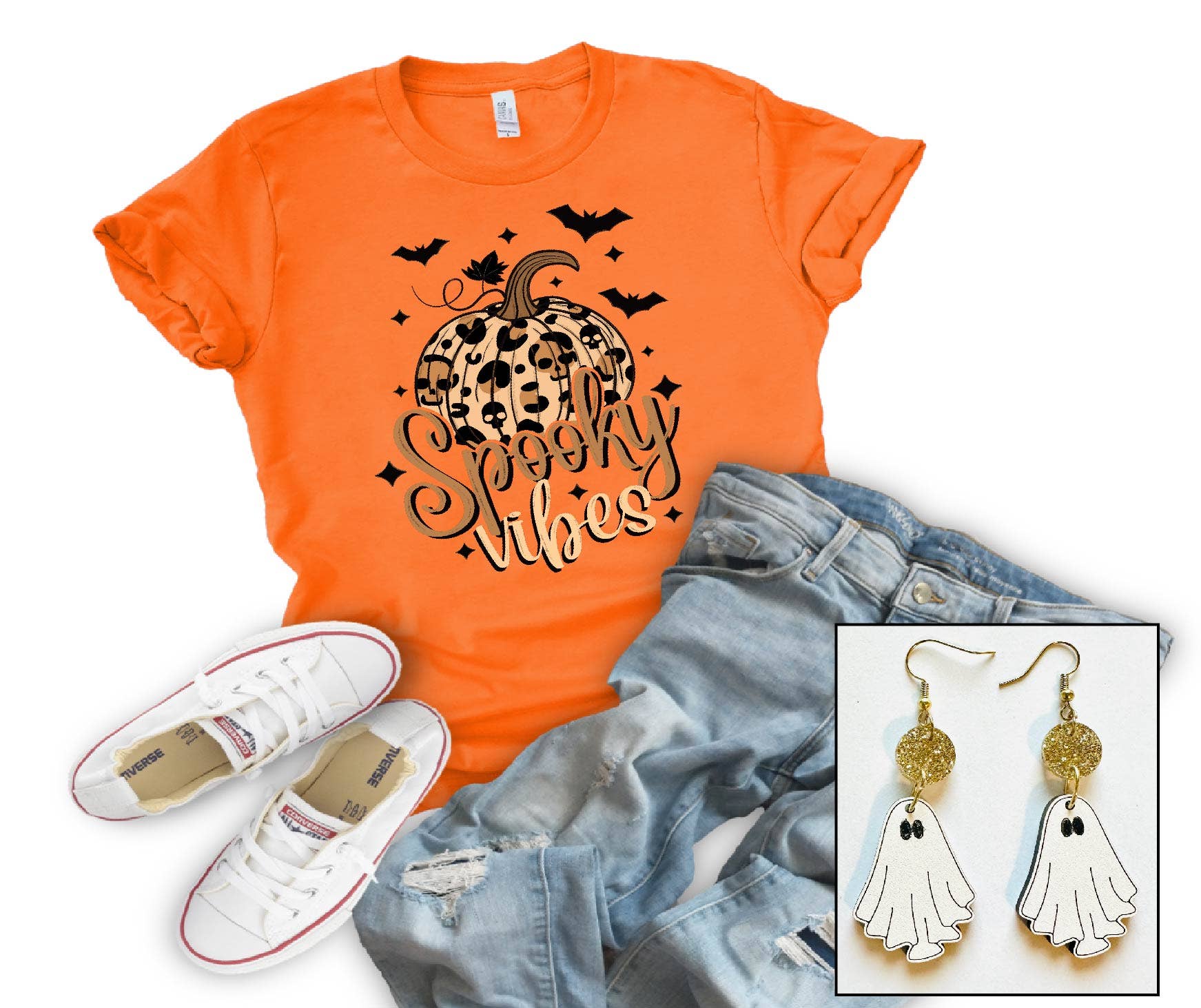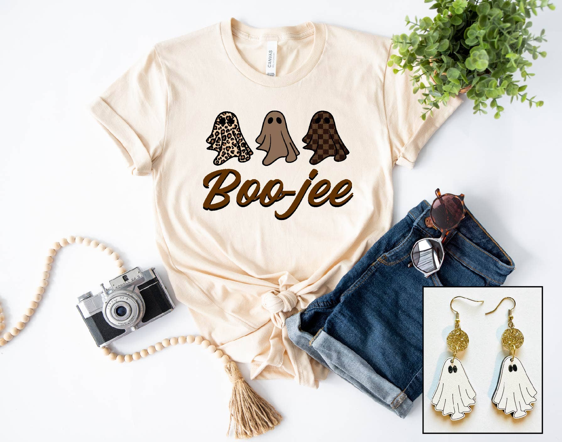 DTG on a Cream *Due to inventory shortages, shirts will either be Bella Canvas, Next Level, or Cotton Heritage* Shirts are a unisex fit. Pairs perfectly with our Ghost Earrings!