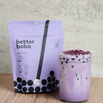 SKU: BOBA002-30 Made in United States Storage: Shelf-stable Product Language: English Ingredients: Ingredients: Tapioca Pearls (Tapioca Starch, Water, Modified Tapioca Starch, Caramel Color, Sodium Alginate), Fructose Syrup, Brown Sugar (Cane Sugar, Molasses), Xanthan Gum, Pectin, Cellulose Gum, DL-Malic Acid, Monopotassium Phosphate Nutrition: 1 Boba Pack 50g of Boba: 106 Calories; 1 mg Sodium; 27g Carbohydrates, 11g Total Sugars Weight: 1.91 kg (4.22 lb) Dimensions: 21.3 x 27.2 x 7.6 cm (8.4 x 10.7 x 3 in)