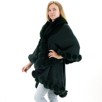 Ivory Solid Color Fur Trim Shawl/Poncho with armhole Material: 100% Acrylic Color: Fuchsia Sizes: One Size Colors may be slightly different than what you see on the screen