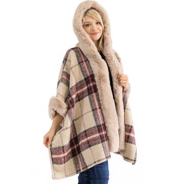Wholesale P3114_Ivory Color Fur Trim Shawl/poncho with Arm Hole