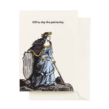 Vintage image of a righteous queen printed beautifully with dark grey ink on our antique printing presses in Ohio. Card reads "Yaaaas Queen." This card comes with a dark grey envelope and is blank inside. This folded card is approximately 4 ¼“ x 5 ½”.