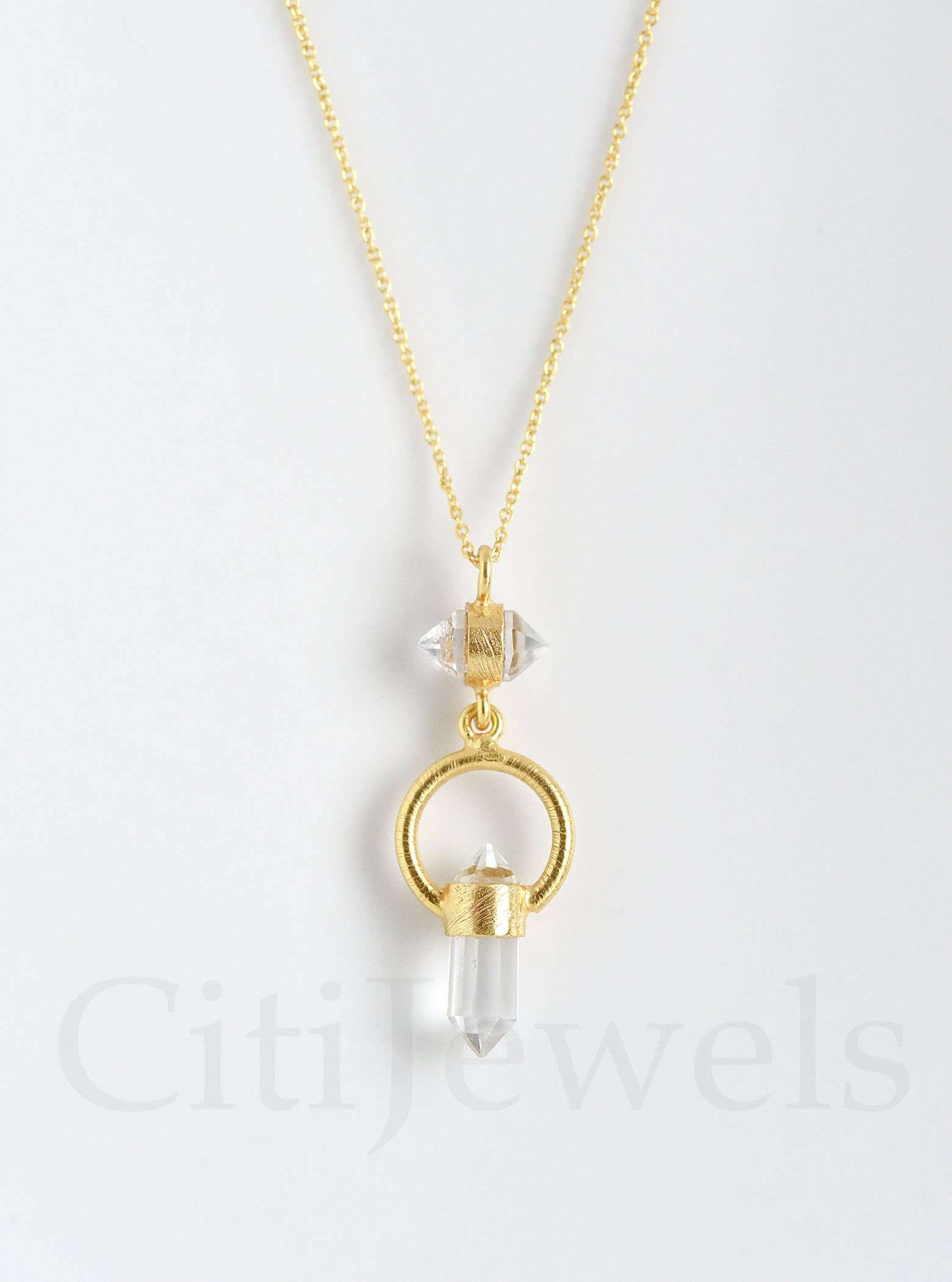 Gold Plated Sterling Silver Quartz Pendant/Charm Necklace
