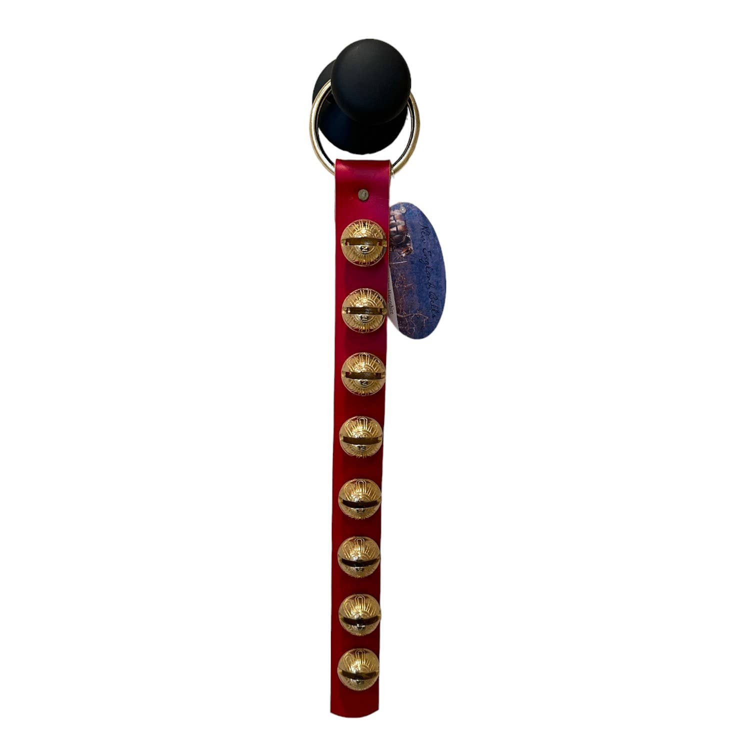 This cheery set of bells can be hung on a door handle for a merry sound to accompany all the holiday comings and goings. 4 Brass-Plated Bells Securely Set in Leather 14 inches x 1 inch Leather Tie for Hanging Made by Amish leatherworkers in Lancaster County, these timeless sleigh bells are cut and tooled by hand using traditional methods. Like all our goods, The Sleigh Bells are proudly made in the USA. This item is made by hand, some variation is expected.