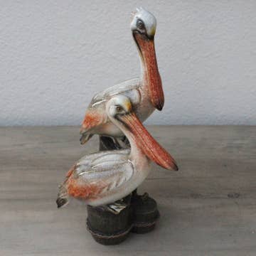 Double Pelican Figurine on Posts - Sea Life Nautical Decor This resin pelican measure approximately 9.25" x 5" x 4" Packed in a brown box.