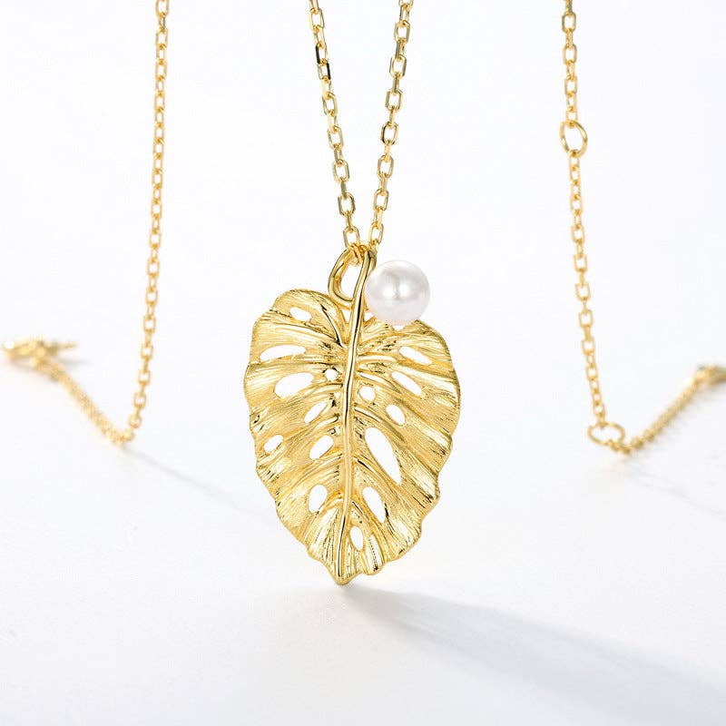 Wholesale Monstera Tropical Plant Leaf Necklace (Worn Gold or Silver)