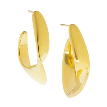 Take a step up, and latch on to these minimal gold and bold fan earrings. Latch Back. Weight: Light Weight. Dimensions: Approx. L: 2.6″ W: 1.6″ Material: Gold Plated; Stainless Steel. Color: Gold.