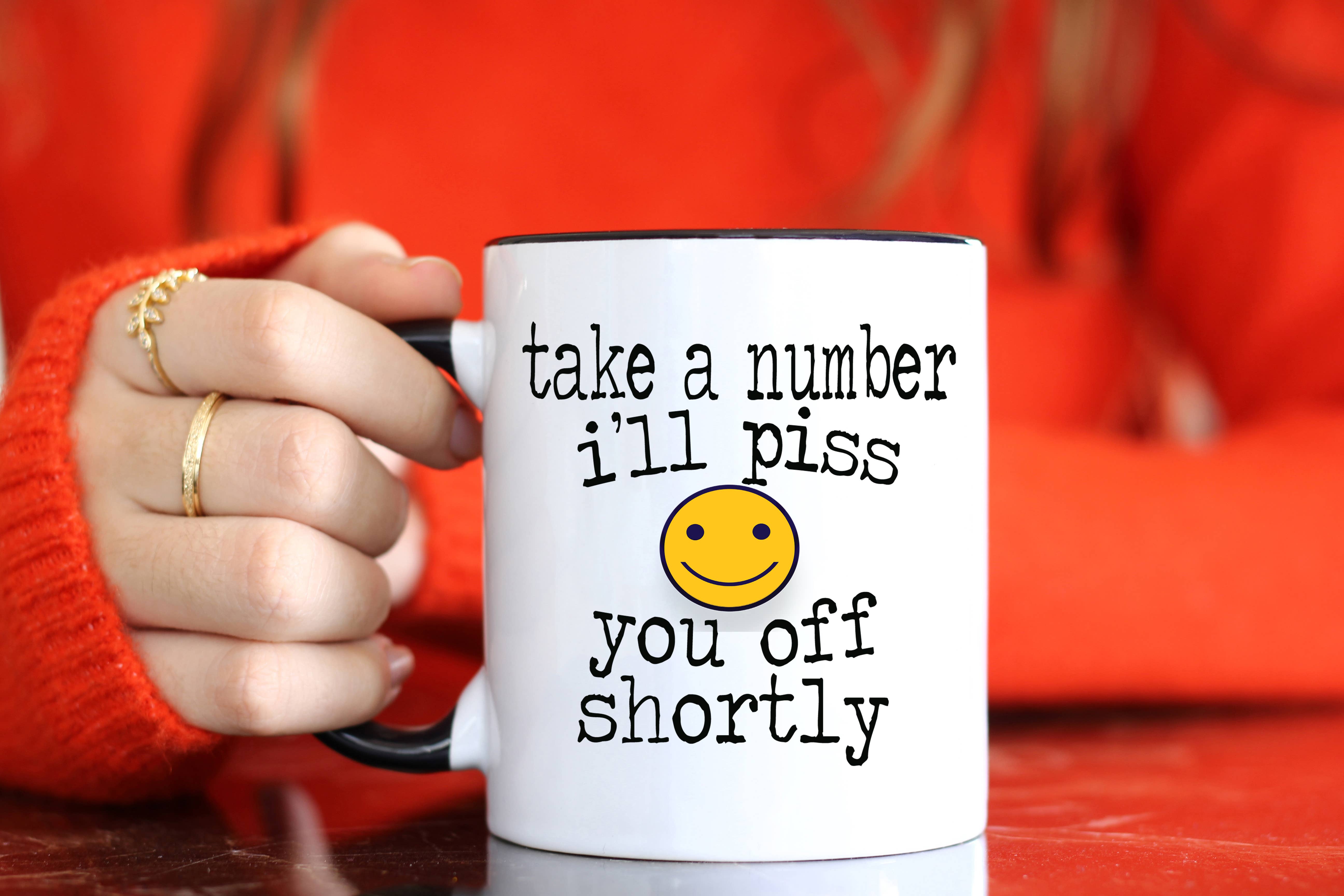 Got a problem? Take a number. Look—not everyone is a “people person”. Cut right to the chase with this best seller, and let ’em know today is NOT the day for complaints. It holds 16 oz. of your favorite beverage (coffee, scotch—what’s the difference?) and is sure to draw a big laugh. Plus, it looks great next to our desktop sign. * the perfect gift for anyone who deals with people * grenade shaped with pull ring and number tab * holds 16 oz. of your favorite beverage * high quality ceramic construction * easy to clean