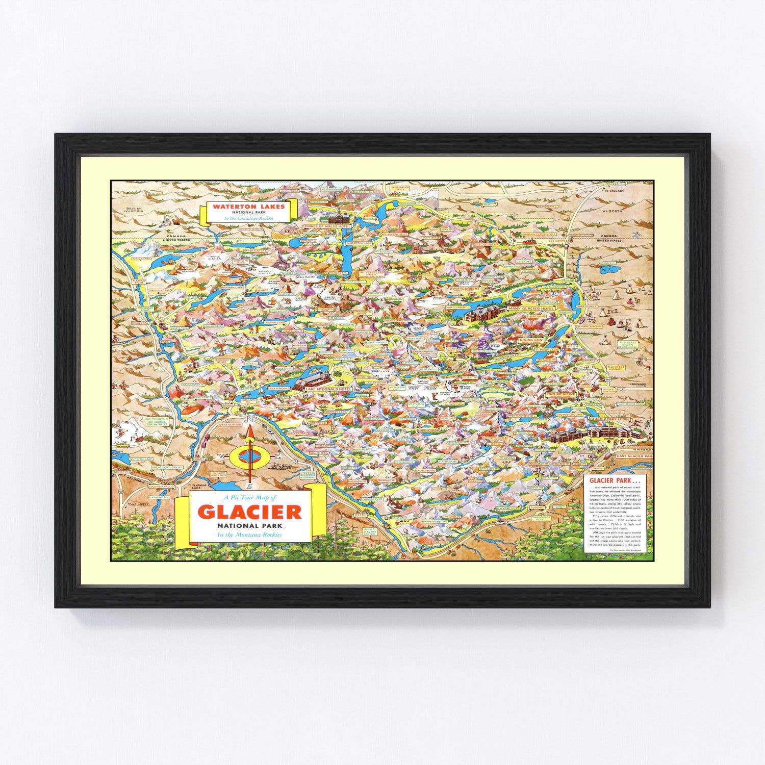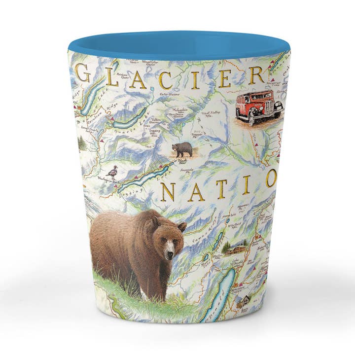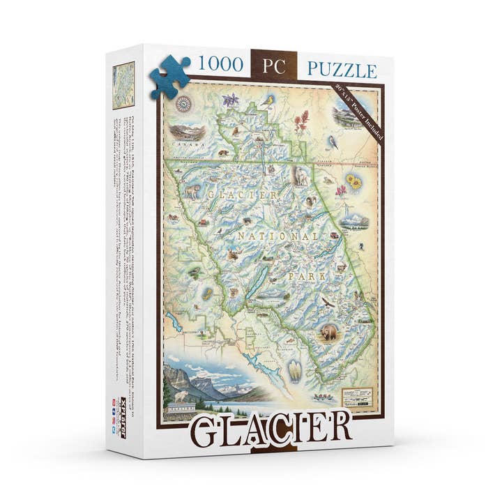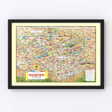 Hand-Drawn, 18" x 24" full-color map, lithographic print in durable, full-color Illustrated tube. The Glacier National Park map is a tribute to America’s centennial celebration of our nation’s 10th National Park. This unique map illustration has been approved by the Glacier Association for historical and geographical accuracy, cultural relevance, and is officially endorsed for sale within all GNP boundaries and affiliated retail outlets.