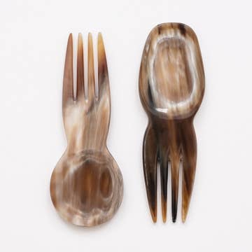 Add this Long Handle Condiment Spoon to your hors d'oeuvre tray - perfect for spooning olives or scooping a dollop of fig chutney. Assorted color tones. This unique, hand-crafted horn product is sustainably made from the horns of the Ankole-Watusi, or Ankole Longhorn, a breed of cattle native to western Uganda and parts of East Africa. These distinctive horns are a recycled byproduct of the food industry and are purchased directly from the cattle keepers, providing revenue for local cattle keeping communities. The horn is then hand carved and polished according to Maadili designs by a small scale artisan community. * Sustainably sourced horn from rural Ugandan cattle keepers, horn is used and upcycled instead of wasted * Hand carved in small scale, Fair Trade artisan cooperative in Uganda * High variability of horn color ensures that no two pieces are the same - pieces come in variable shades of white to brown to black * Hand wash HANDMADE IN UGANDA APPROXIMATE SIZE: 5" x 1"