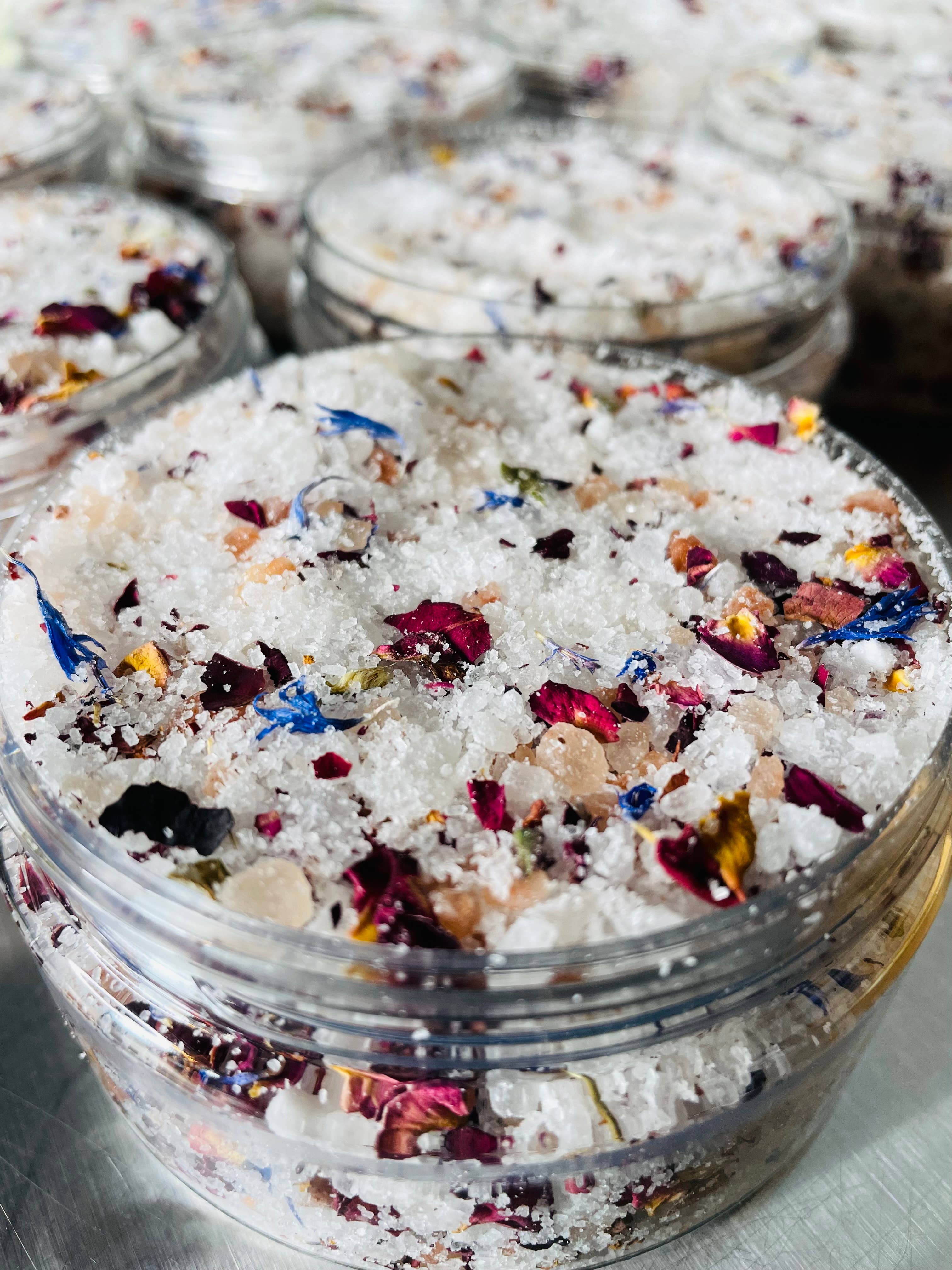 Beauty in a bath! Our Handcrafted Goat Milk Bath Salts are made using the finest ingredients including Goat Milk and Dead Sea Salt from Israel. Approximately 16 ounces Goatmeal Honey contains oats for a soothing bath. Jasmine, Lavender and Robyne's Rose contain flower petals (jasmine, lavender or rose) in addition to the goodness of goat milk.