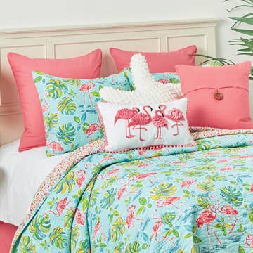 Bring a touch of playful elegance to your bedroom with the Abigail Bow Quilt Set. This delightful bedding features a whimsical design of charming pink bows set against a white ground. The quilt reverses to a delicate pink floral pattern, offering two beautiful looks in one. Crafted from ultra-soft brushed polyester, this quilt set ensures a cozy and comfortable feel. The polyester fill provides just the right amount of warmth, making it perfect for all seasons. This set is also machine washable, ensuring easy care and low maintenance. Size: TW: 66X86'/20x26" FQ: 88x90''/20x26"x2 Face & Back: 100% POLYESTER 85GSM Fill: 100% POLYESTER Machine Wash. Cold Water. Gentle Cycle. Do Not Bleach. Tumble Dry. Low Heat. Use Large Capacity Machine. Cool Iron If Needed. Design by Modern heirloom
