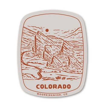 These waterproof matte vinyl stickers feature artwork of the scenic view of Horsetooth rock in Fort Collins, Colorado. Each sticker measures about 4" x 3". These stickers are extremely durable and are excellent for water bottles, laptops, cars, or other places exposed to the elements.