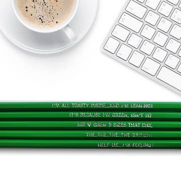 Nobody will be putting magnets on your back brace when you're using these snazzy pencils! Reading "I'm the Mary, you're the Rhoda," "I invented post-its," and "Totally cutting edge," these hot pink pencils will get you in the mood to strap on your platforms and dance with Sandy Frink to Cyndi Lauper.