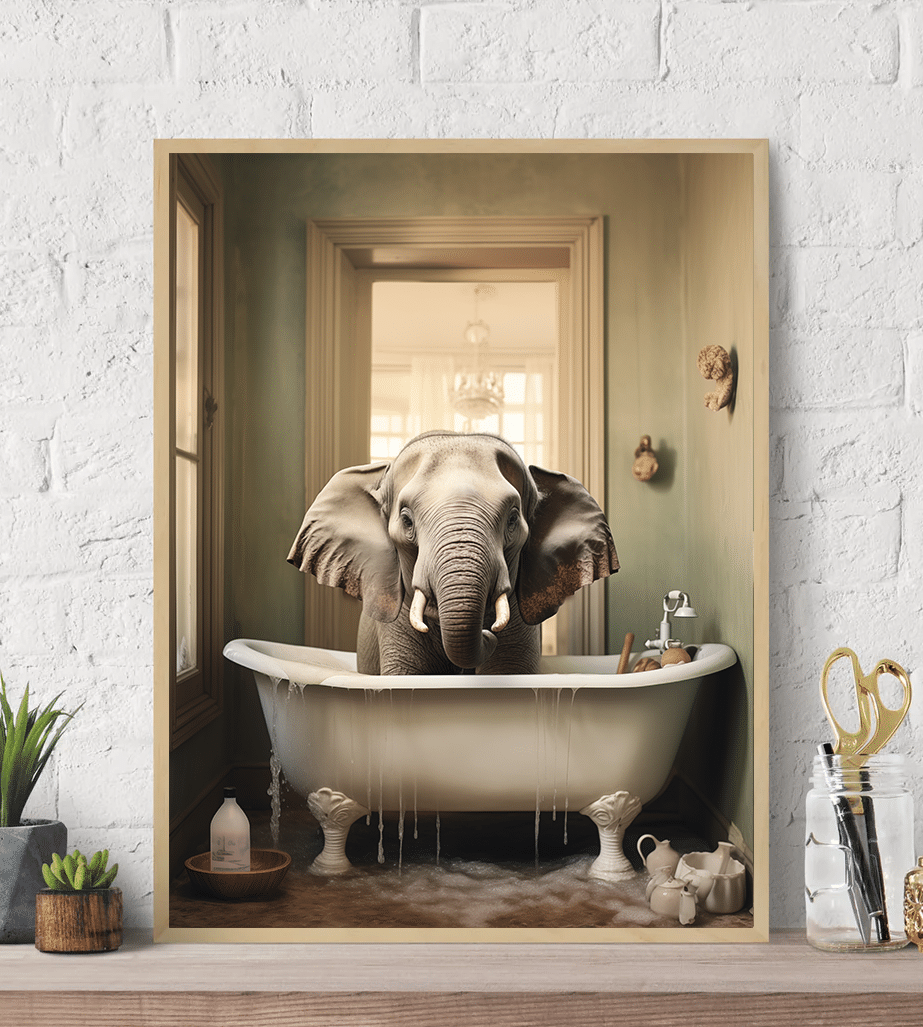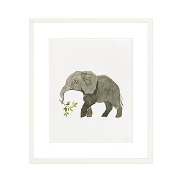 Historie de Babar Illustration T on cream background in wooden frame behind glass