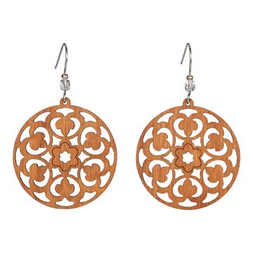 Resin drop earrings in a circular wave pattern with fish hook back. -Fish Hook -Length: 2" -Diameter: 1.5" -Nickel and Lead Compliant (Hypoallergenic)
