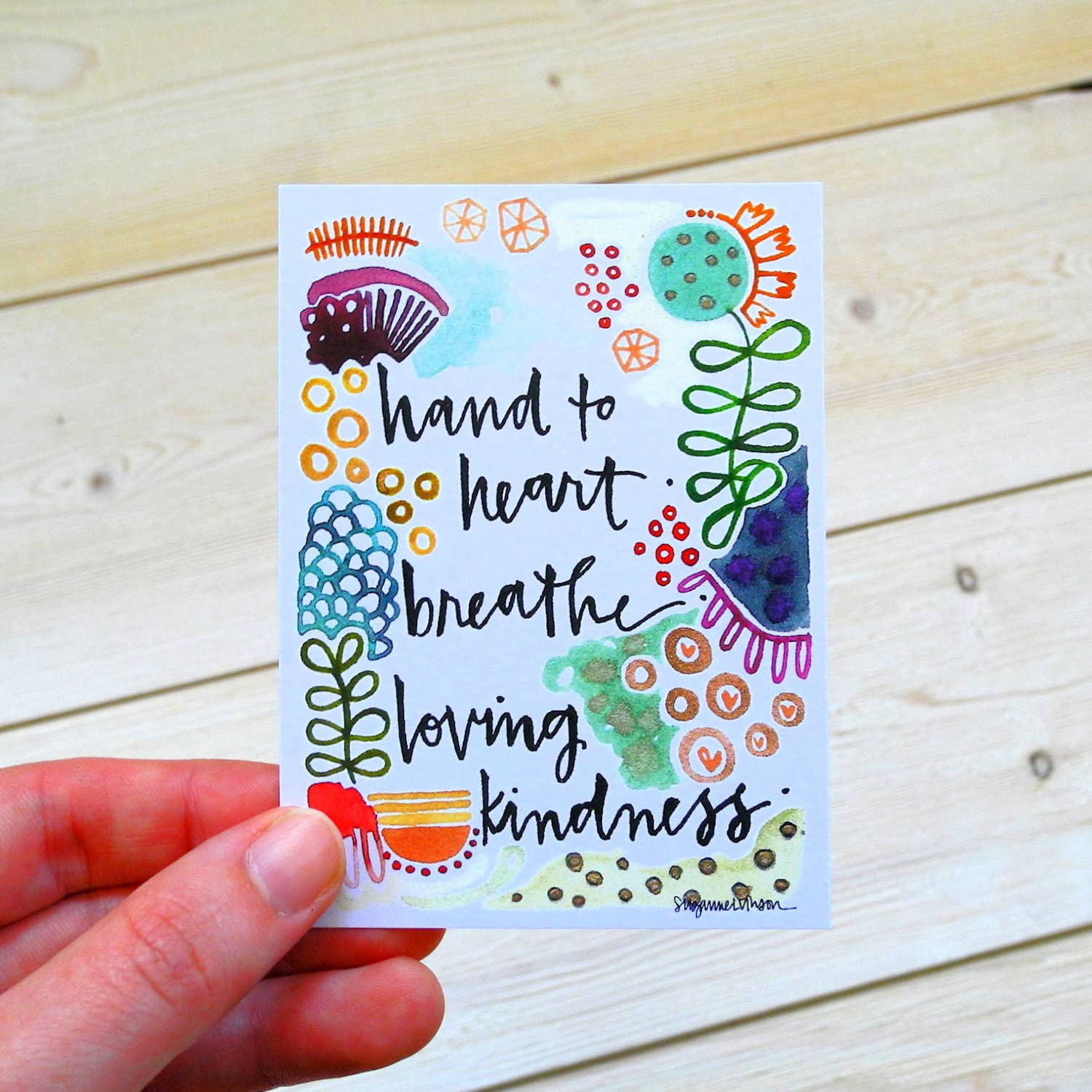 Suzanne's work is heartful and intelligent. My first purchase was inspired by a customer of both mine and hers who thought my "Words Matter" shop would be perfect for her work--and she was so right! We love having her art in the shop and I believe we've reordered twice now in just a short time!