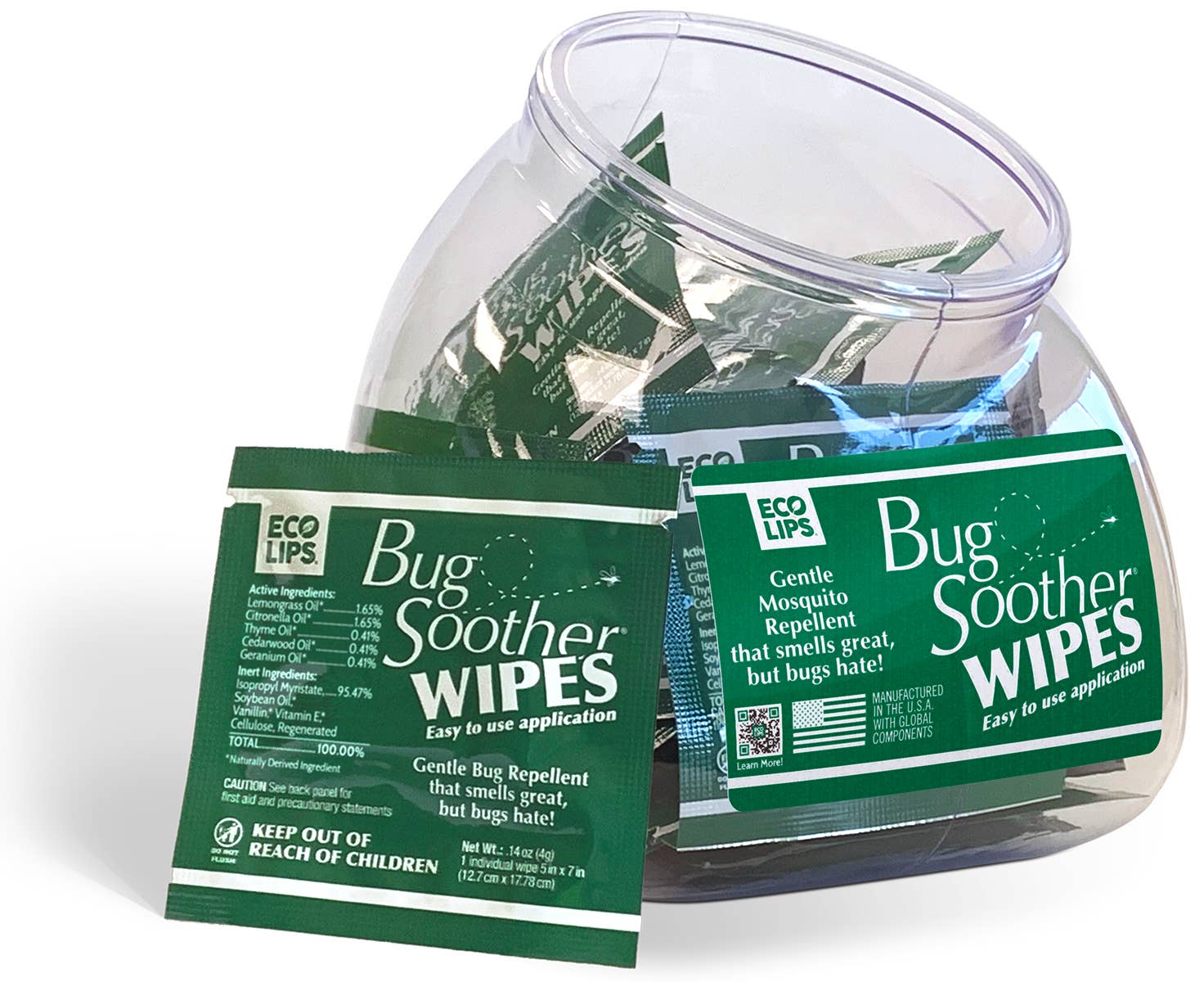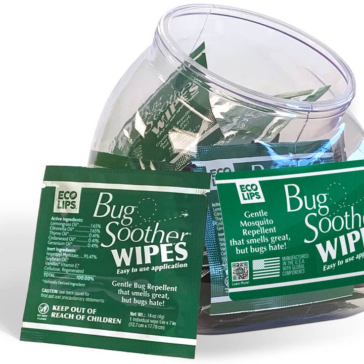 Enjoy convenient, travel-friendly insect protection with Bug Soother’s individually wrapped mosquito repellent wipes. Repels mosquitoes for up to 4 hours so you can enjoy more of what you love outdoors. Bug Soother Wipes are safe when used as directed and can be applied on the entire family - kids and pets included! Great for gardening, picnics, tackle boxes, and hikes as the wipes are easily portable and travel friendly. Simply apply non-greasy wipe on exposed skin when heading outdoors. Made with lemongrass & citronella to repel disease-carrying insects like mosquitoes combined with skin-safe ingredients like vitamin e – a formula that smells great, but bugs hate! 15ct carton - 6ct case minimum | individual wipes are $1/each SRP