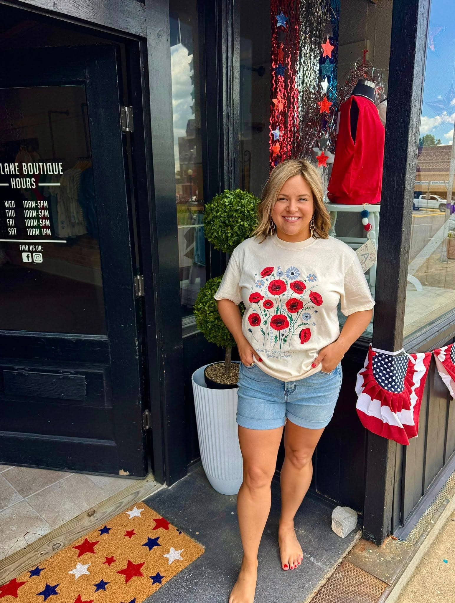 Honor faith and freedom in effortless style with our Freedom in Bloom tee. This buttery-soft Comfort Colors shirt features a vibrant bouquet of red poppies and wildflowers—symbols of remembrance and resilience. Beneath the floral artwork, the Scripture reads: "Where the Spirit of the Lord is, there is freedom." – 2 Corinthians 3:17 Perfect for Memorial Day, the Fourth of July, or everyday wear. The relaxed fit makes it a go-to favorite for summer picnics, parades, or quiet mornings on the porch. Pressed in Kentucky. Comfort Colors 1717, Women’s Christian Apparel, Christian Gifts for Women, Faith Based Clothing, Church Outfit Ideas, Floral Inspirational T Shirts for women, Boutique Faith Tees, Handmade Christian Shirts, Boutique Graphic Shirt, Christian Boutique Clothing, Trendy Boutique Tee, Everyday Faith Tee, Retro Style Shirt, Christian Graphic Tee, Religious T Shirt, Vintage Inspired, Oversized Graphic Tee, 4th of July Fourth, Memorial Day, Labor Day, Americana, Red White Blue
