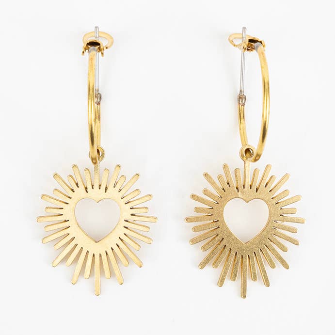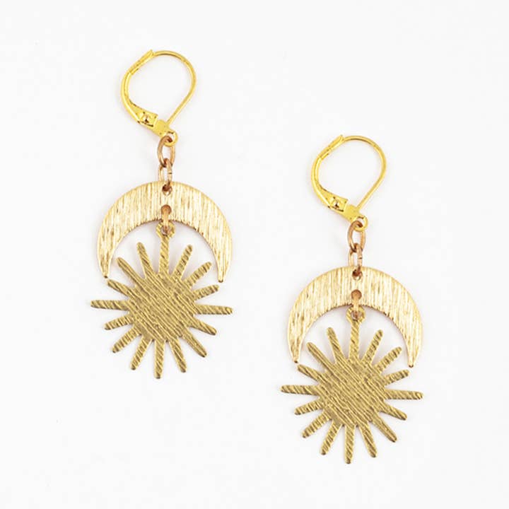 These beautiful earrings are perfect for lovers of the sun and moon. 1" L Brass or silver-plated Surgical steel post The sun & moon post earrings are handmade in a fair trade workshop in Guatemala.
