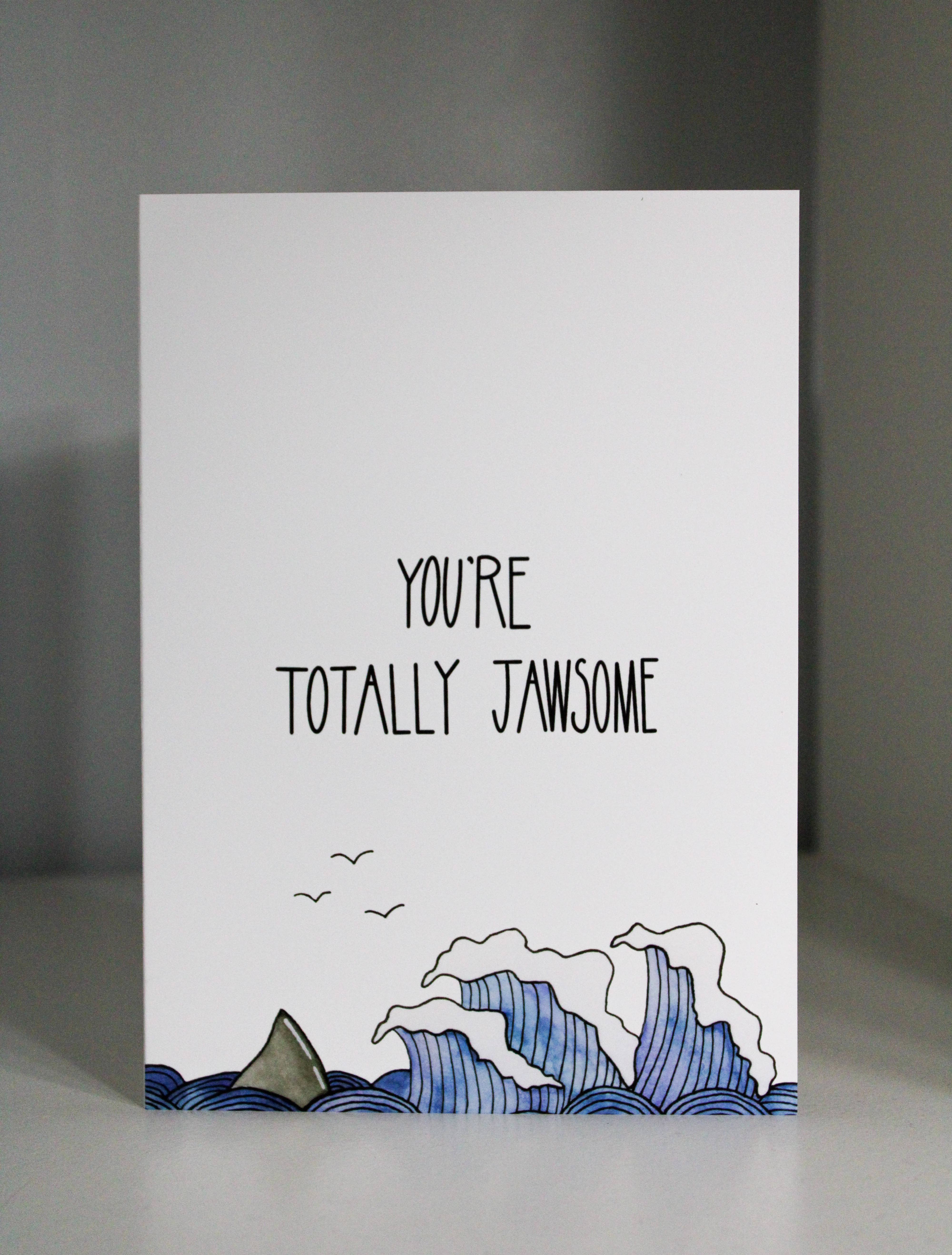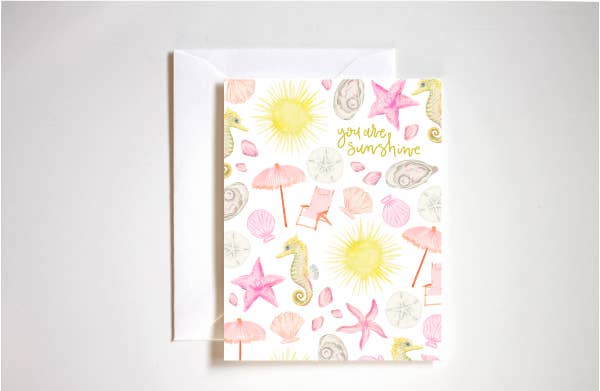 "You're one shell of a friend" A6 sized card printed on white felt cover stock. Inside is blank and the card comes with an envelope. Envelope color provided will be based on availability.
