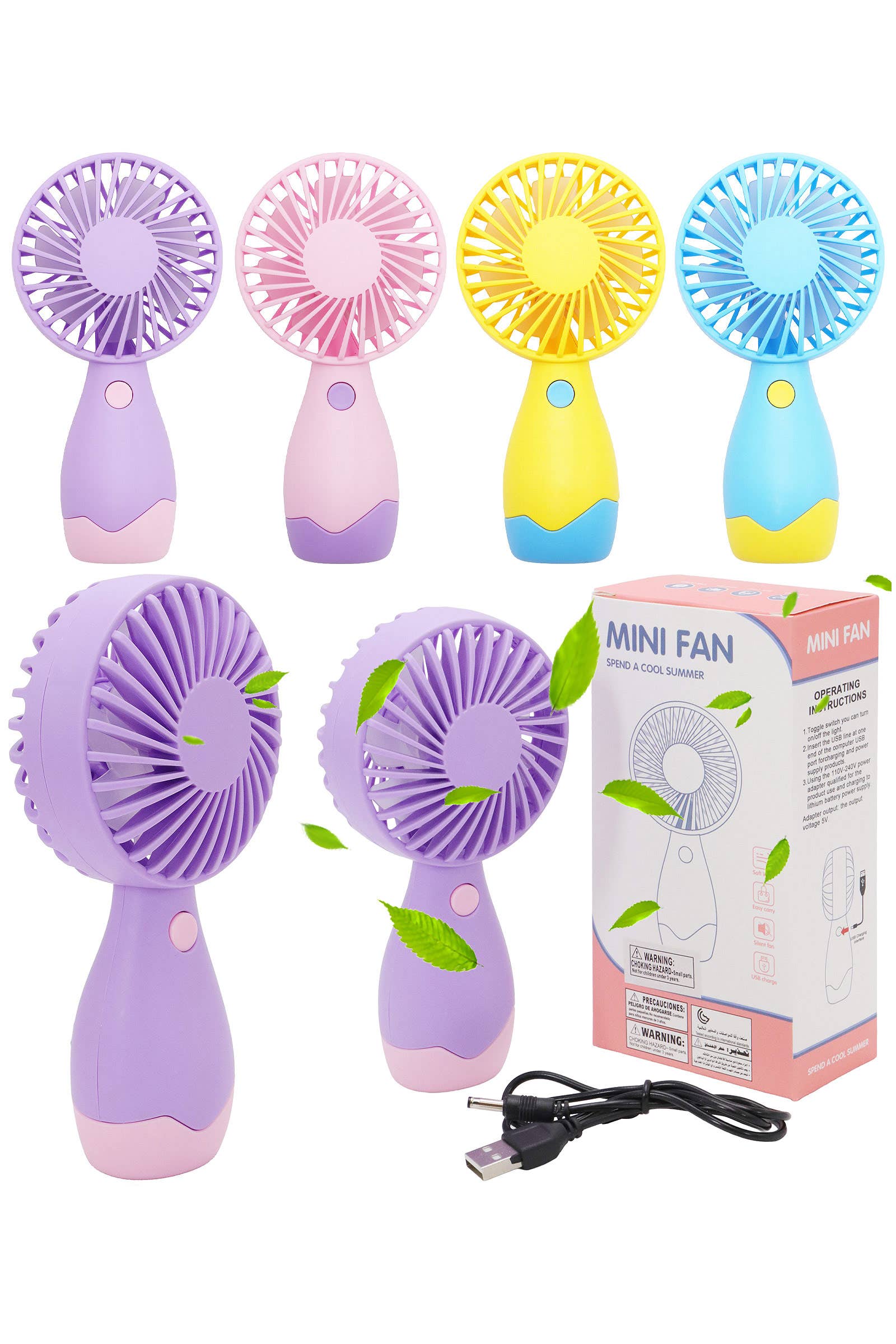 Portable Hand Fan with Pull out Stand -Mini portable fan works wonders while going out to a club or party at hot humid areas. The travel fan brings you a quick relief of wind onto your face -USB Rechargeable Personal Fan -Size: 5.75 Inch X 2.5 Inch -3 Color Portable Hand Fan Assorted
