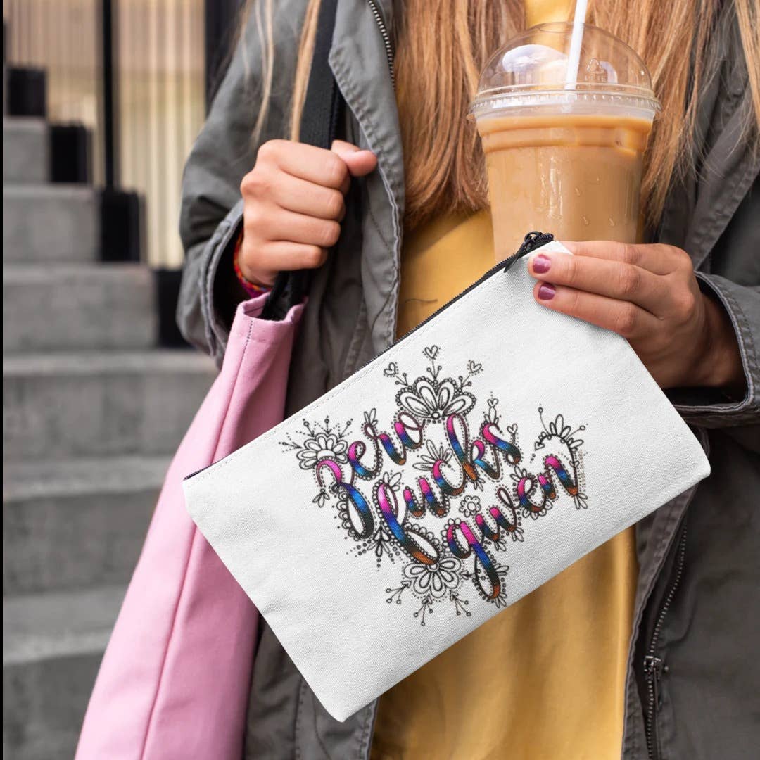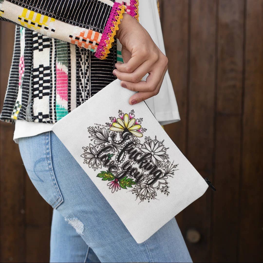You are purchasing: One (1) decorative pouch. - 9" x 6" - Woven poly-cotton blend - Hidden zipper - Machine Washable This design says: You've Got This Shit The perfect little sassy pick-me-up. Partly uplifting and motivating, part sassy and sweary, this design was created to be your own cheering squad, helping you get through whatever sh*t you've got going on. L'il Zippies can be used to stash and carry anything from pencils and pens, to makeup and travel toiletries. I hand-draw these designs using pencil and ink, then I digitally scan them, edit the designs for clarity, and then they are digitally printed on decorative zip pouches. The black outline is indelible - it will never wear off, crack, or fade. You (or whoever you gift this to) will turn this zip pouch into cheeky, yet functional, art by unleashing all your creative powers and Coloring your heart out!