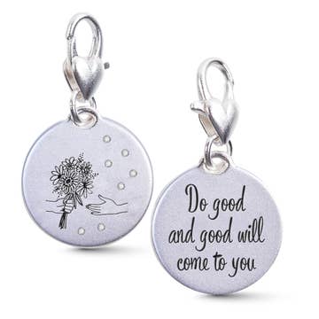 This charm, Be the Change You Wish to See, is a condensed version of Mahatma Ghandi's quote "Be the change you wish to see in the world," and features a globe icon. It's your daily reminder to make a positive impact in your world. Hand-painted in our Denver workshop. This bronze-tone charm measures 3/4" and comes with a jump ring. Charms come un-carded. Bracelets are antique brass bangle-style with a hook closure. One size fits most. Necklaces are 18" antique brass with lobster closure. All products are lead-free and nickel-free. This is a retired, limited-edition design.