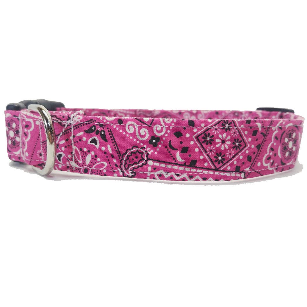 Handcrafted dog collar made with sturdy materials for washing and selected quality cotton fabrics. Collar feature plastic quick-clip buckles to quickly and conveniently remove the dog collar. Leashes are made of cotton with durable interfacing and snap hook.