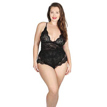 iCollection - Wholesale Lingerie Bodysuit - Women's - Best Seller!  Hazel Plus Size Lace Plunge Bodysuit Lingerie