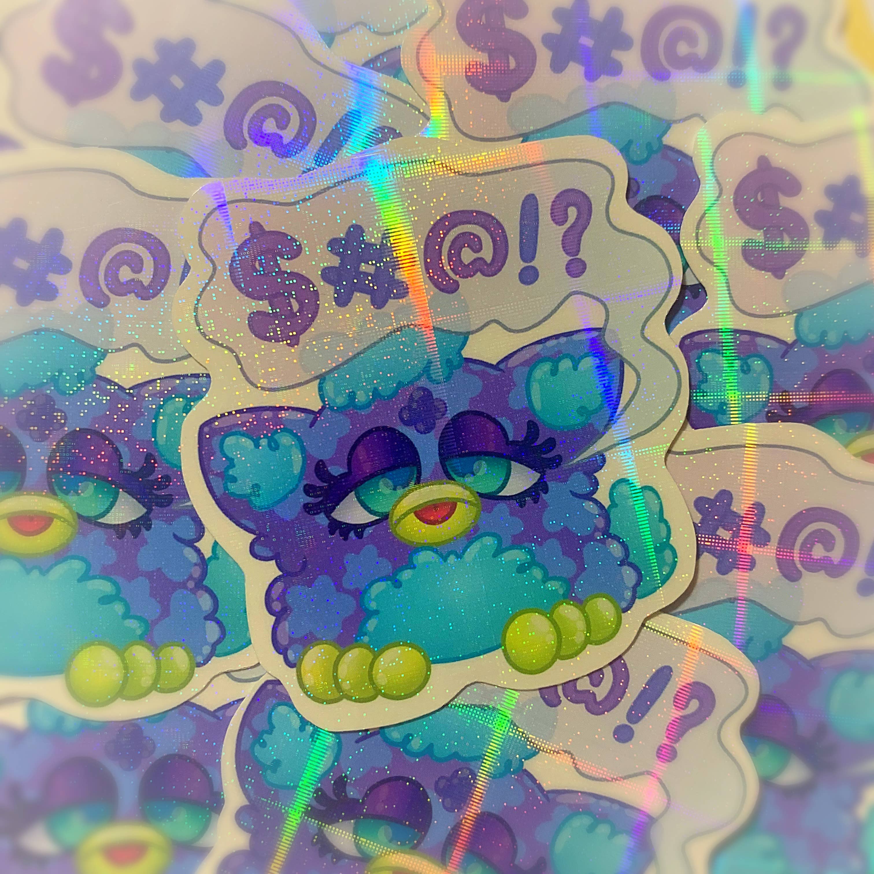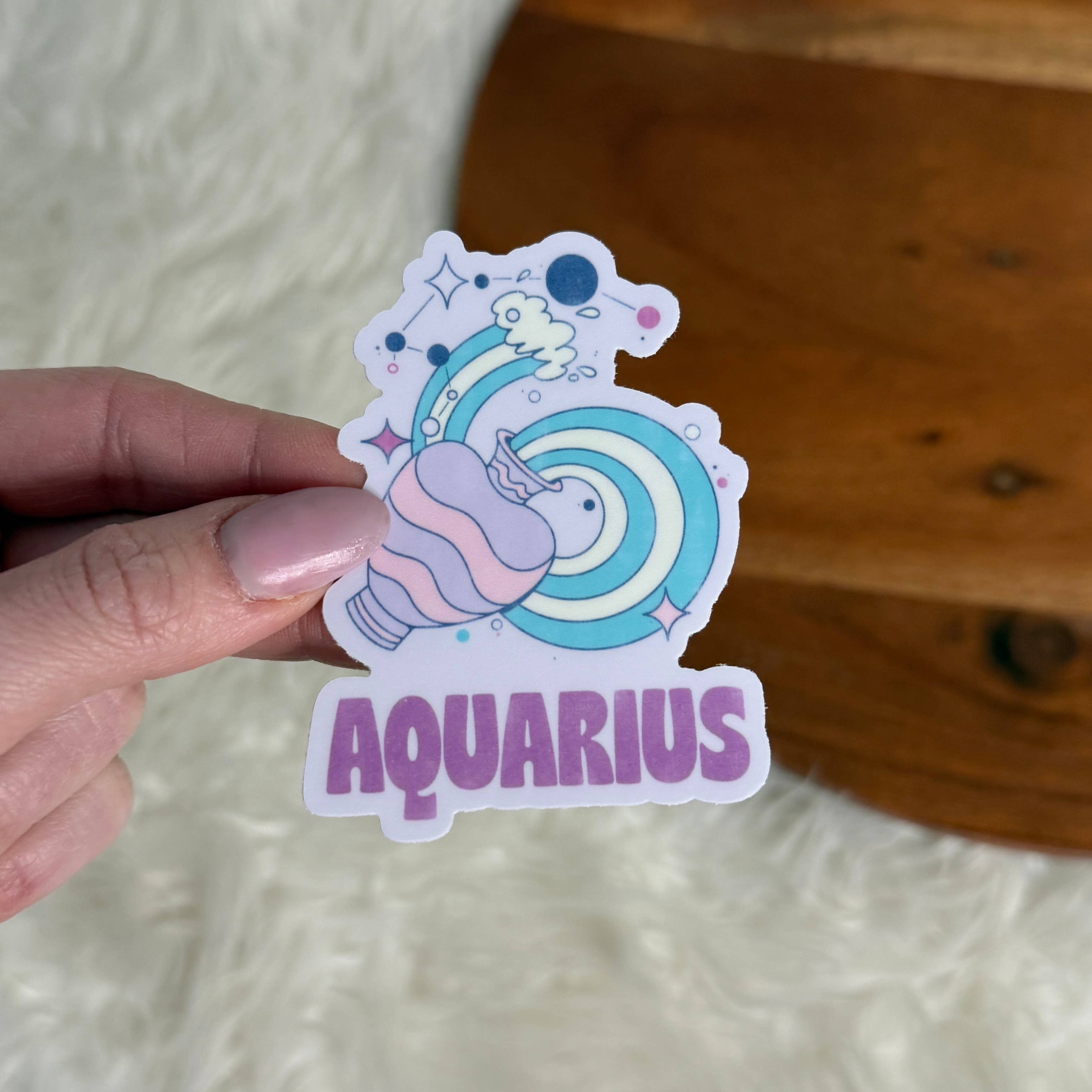 Sticker is roughly 3 inches, holographic and waterproof vinyl, not UV proof.