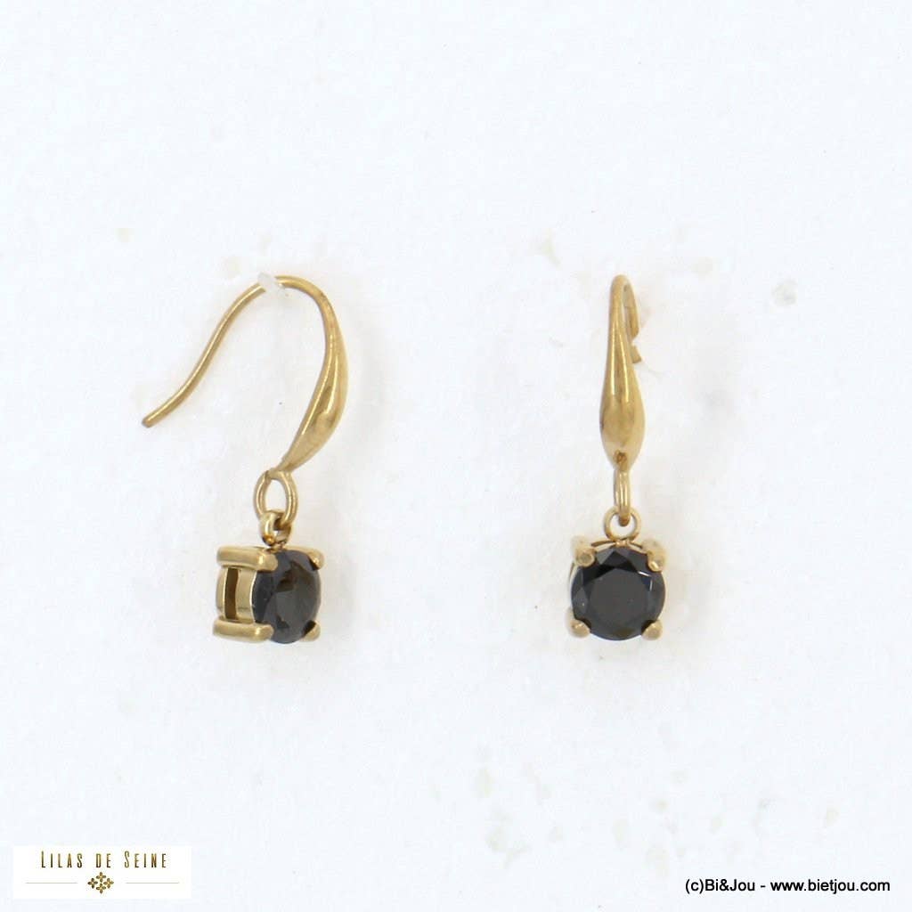 Asymmetrical dangling sun and moon mini-hoops in stainless steel and mother-of-pearl 0324196. The dimensions are approximately 12x27mm. These earrings make the perfect set with the matching necklace 0124020 to create a gift box. These earrings attach to the pierced ear with a latch clasp. This jewelry is made of natural mother-of-pearl: The shape, color, and size may vary. Nickel-free, lead-free, cadmium-free.