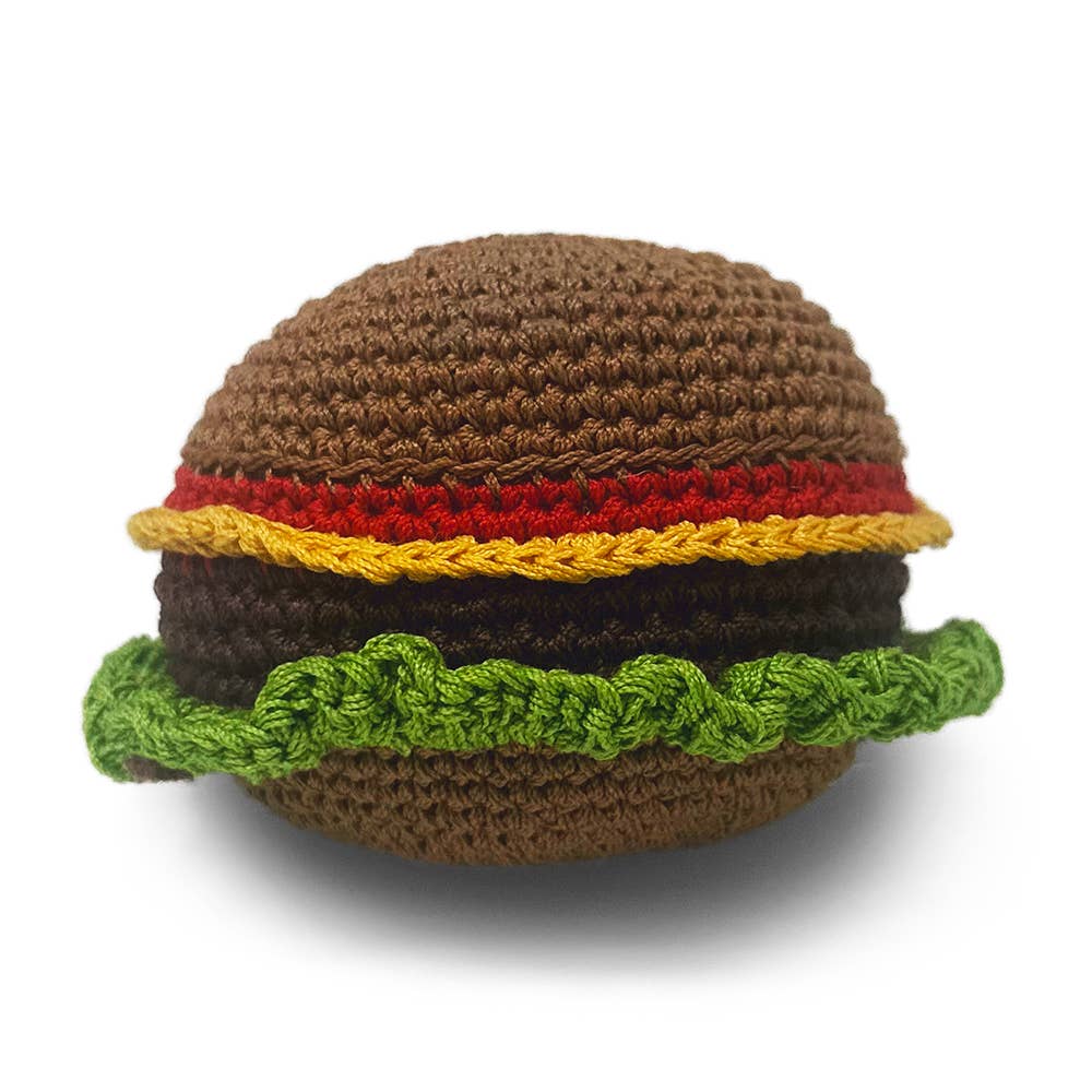 French Fries designed dog crochet toy. Handmade interlace cotton thread, designed to be flexible, durable, and improves dental hearth by removing deposits of calculus. Add all that with a squeaky inside means hours of fun! Measures about 3.5 inches tall.