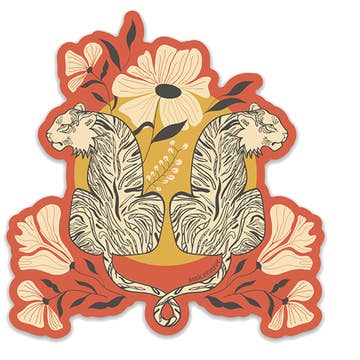 2.4x3 inch glitter holographic vinyl sticker of my original tiger moon illustration