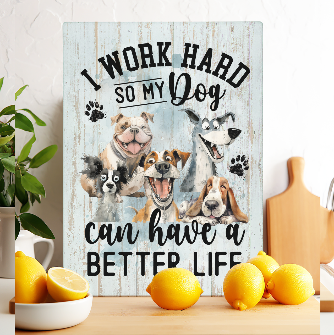 A little fun for the kitchen! A generously sized 12x15 inch tempered glass board with a humorous repeating message as the background, "the chef is not responsible for dog hair in the food!" (we use "cat hair" for cats and "galloping gourmet" for horses) We print on the back of our boards so they'll look new for years as long as you keep them away from the dishwasher. They make awesome hostess gifts and wedding gifts. Plus they can do double duty as Charcuterie boards! Made to order in the USA.