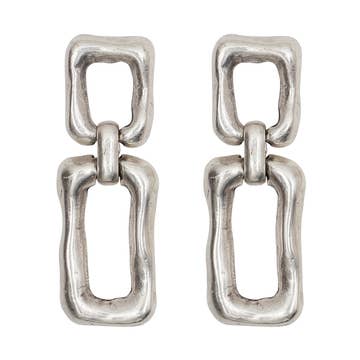 Having the versatility to wear them 3 different ways, these earrings give you the chance to vary your look day to day. 2" in height, 1.25" in height when clasped. Handmade with care in Austin, TX. Available in Sterling Silver and 14kt Gold-Fill.