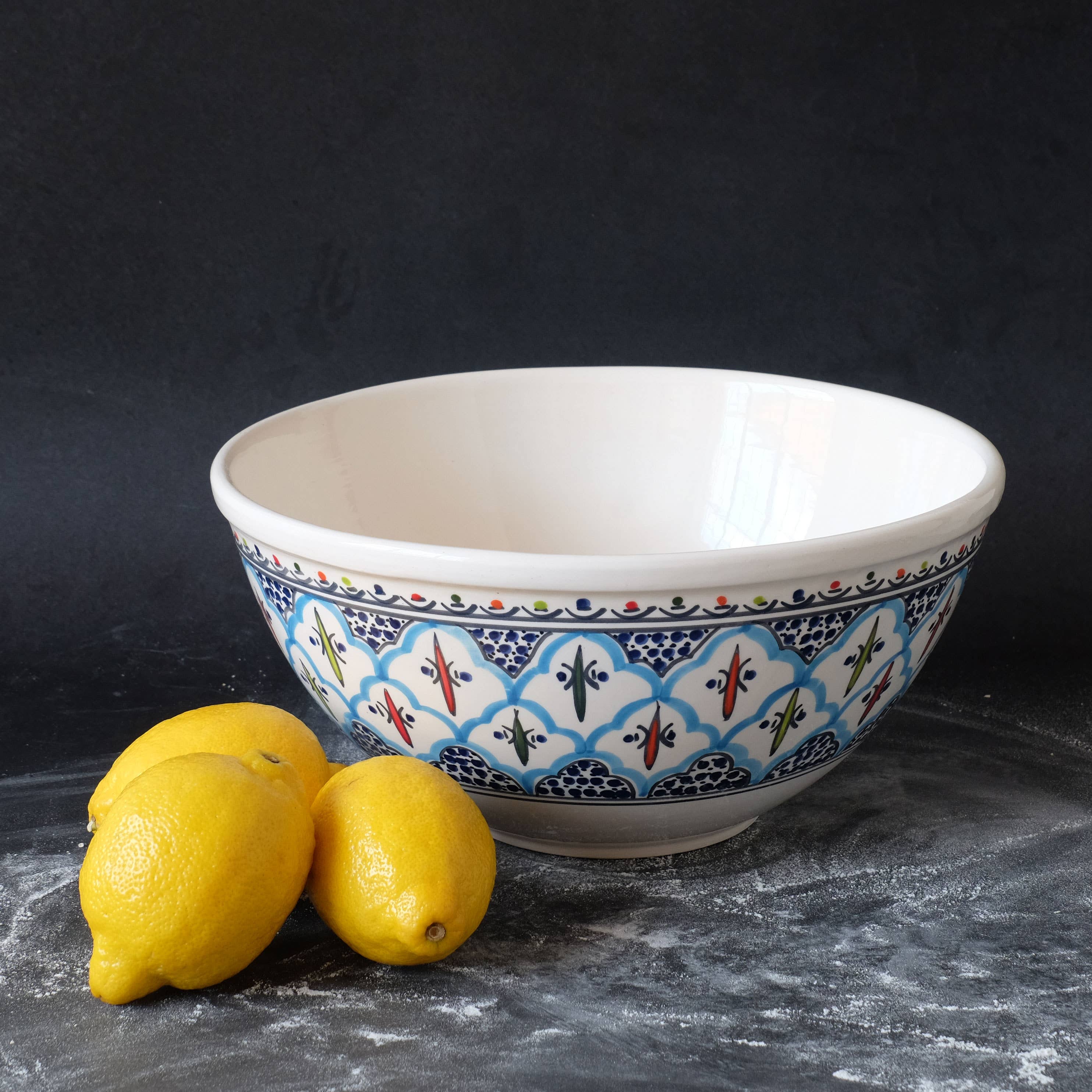 About the Product Bring color and character to your tables with our 10" Hand-Painted Stoneware Deep Serving Bowl, Salad, Pasta Bowl — a vibrant blend of artistry and everyday function, inspired by Mediterranean Design and colors. Our bowls are: *10" D x 3.5" H *Made from stoneware *Painted freehand with lead-free, food-safe glaze *Food Safe Tested *Microwave and dishwasher safe Sobremesa is a social enterprise working with Tunisian artisan studio, where over a dozen makers work collaboratively in an 8,000 sq. ft. workshop to celebrate both heritage craftsmanship and bold modern design. Perfect for: Spring Decor 2026. Easter Brunch, Dinners, Mother's Day. They make thoughtful hostess and housewarming gifts, wedding registries, hostess gifts, Mediterranean-style tablescapes, and thoughtful housewarming presents, Ethical home goods. Also consider: Ethical home goods, sustainable gifts, home decor, handmade gifts, eco-friendly holiday table setting for home and kitchen.