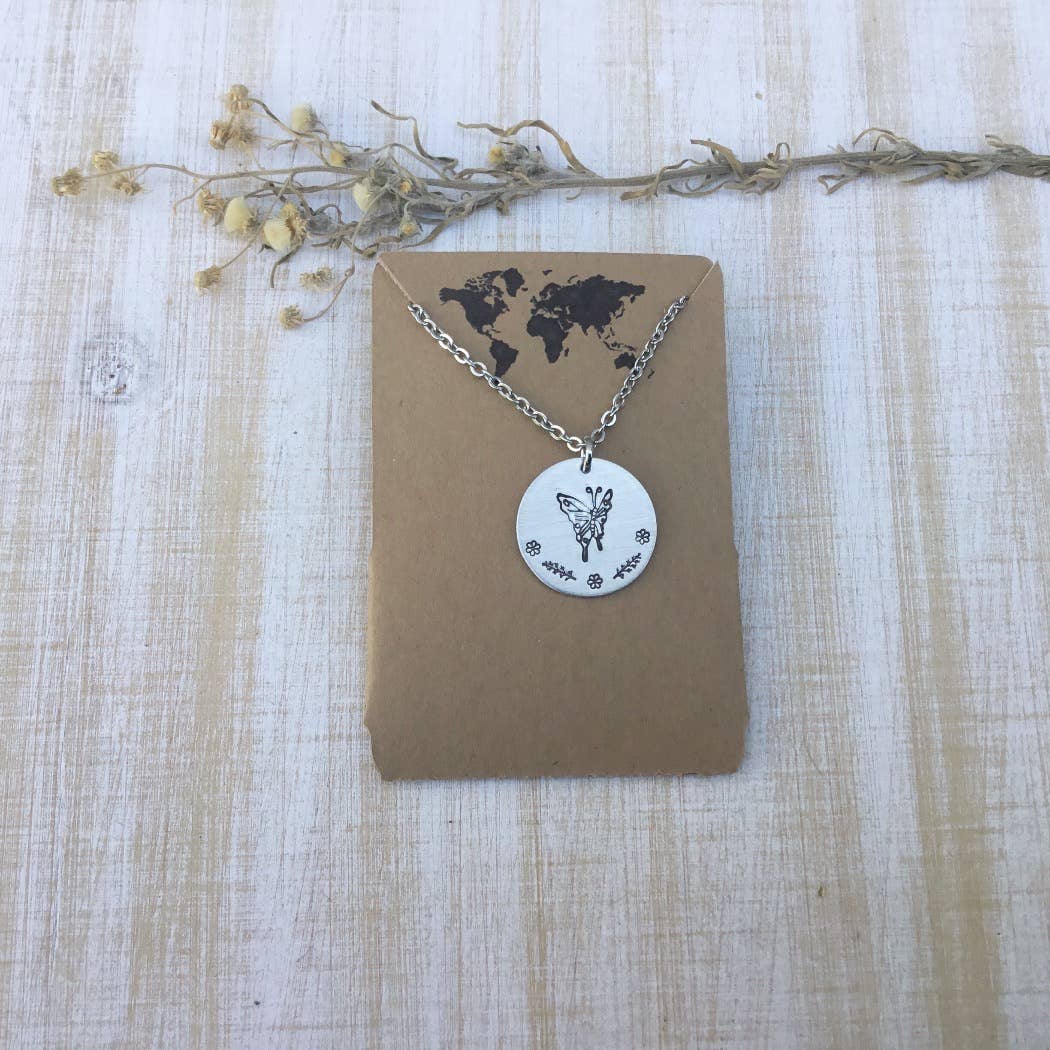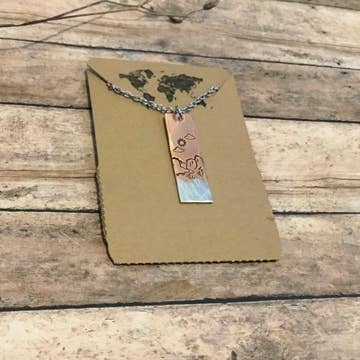 Every Day is Earth Day necklace is made out of recycled aluminum which is a very lightweight metal! Tree pendant measures approx. 1 1/4" x 1 1/4" and is hand stamped Every day is earth day with leaf stamps. It is 16" in Length