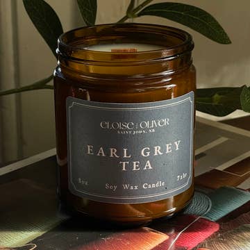 Lovers of dark academia and libraries and books and reading will love our Earl Grey apothecary candle. The familiar aromatic notes of this beloved bergamot tea are refreshing and grounding, warm and cozy - perfect for hibernation season. Makes a lovely gift for your favorite bookworm! SCENT DESCRIPTION: black bergamot tea and a splash of cream with notes of dried lavender and lemon. A scent that is bright and fresh, while also rich and warm and enveloping. DETAILS: • Dimensions: 3"x 4" • Burn time: approximately 45 hours • 8-oz heavy square amber glass jar with a cork lid • Premium 100% soy wax, American sourced • Lead-free cotton wicks • Premium fragrance oils and essential oils • Non-toxic, phthalate-free, gluten-free, plastic-free, clean-burning • Excellent scent throw, hot or cold • Handmade in Kentucky, USA