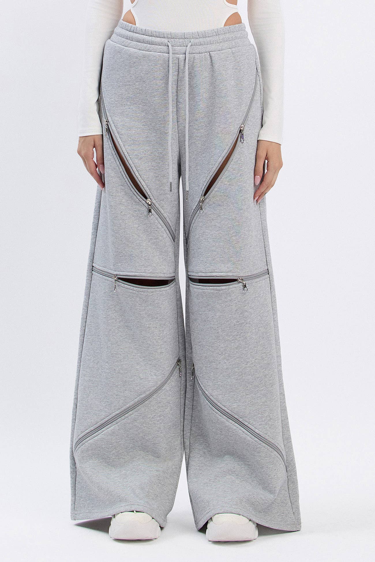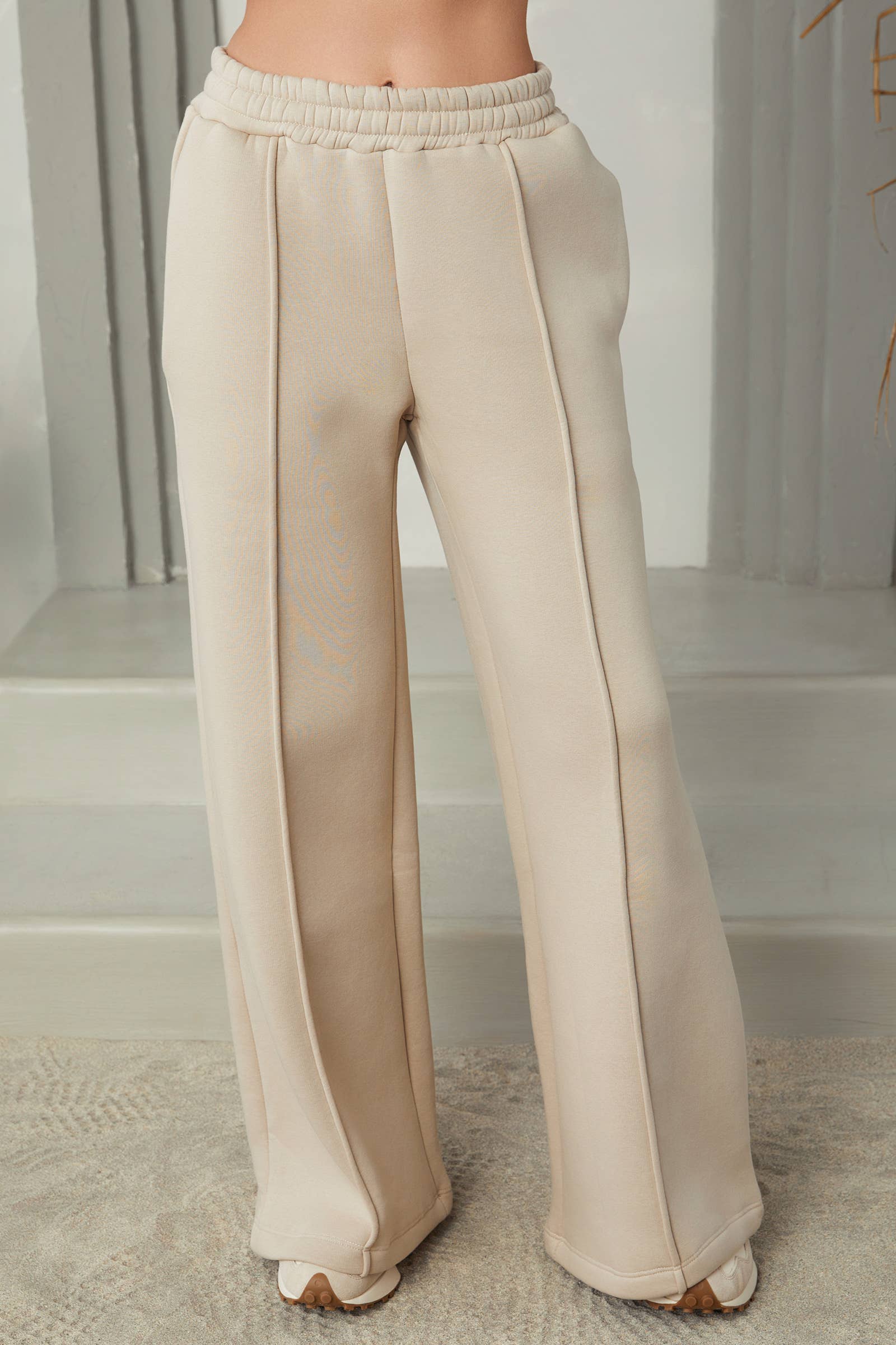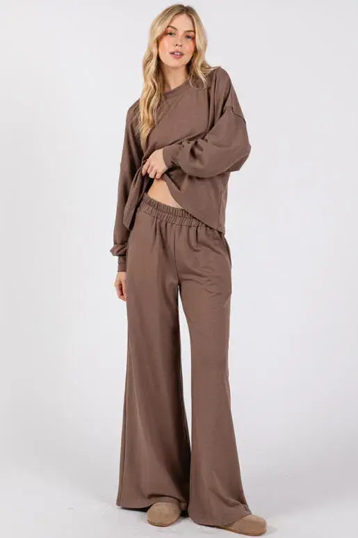 - Cut out legs fleece straight pants - Cut out band detail on front - Stretchy - Elastic band included on waist - Matching with T2285 - Model size 5' 6" ( Wearing S size) - Keywords: fall clothing, fall 2024, lounge sets women