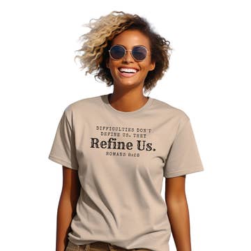 Stay grounded in faith and strength with our “Difficulties Don’t Define Us. They Refine Us.” Romans 8:28 Christian T-Shirt. This bold, motivational tee is a powerful reminder that every challenge we face is part of God’s refining process — shaping us into who He’s called us to be. Designed for comfort and durability, this shirt features a clean, modern typography design printed on soft, premium cotton that feels as good as it looks. Whether you’re at the gym, on the court, or out with friends, this shirt makes a strong statement of faith and perseverance. Perfect for men and women who want to wear their faith proudly, this inspirational shirt pairs effortlessly with jeans, joggers, or shorts. It’s also a thoughtful gift for anyone walking through a difficult season — a reminder that God works all things together for good (Romans 8:28). Details: 1. Unisex fit (true to size) 2. Soft, breathable cotton 3. Verse: Romans 8:28 4. Available in multiple colors and sizes 5. Perfect for church, workouts, or everyday wear Empower your faith and inspire others — because our trials don’t define us; God uses them to refine us. SIZE CHART: Small fits chest size up to 36 inches Medium fits chest size up to 40 inches Large fits chest size up to 44 inches X-Large fits chest size up to 48 inches 2X-Large fits chest size up to 52 inches 3X-Large fits chest size up to 56 inches