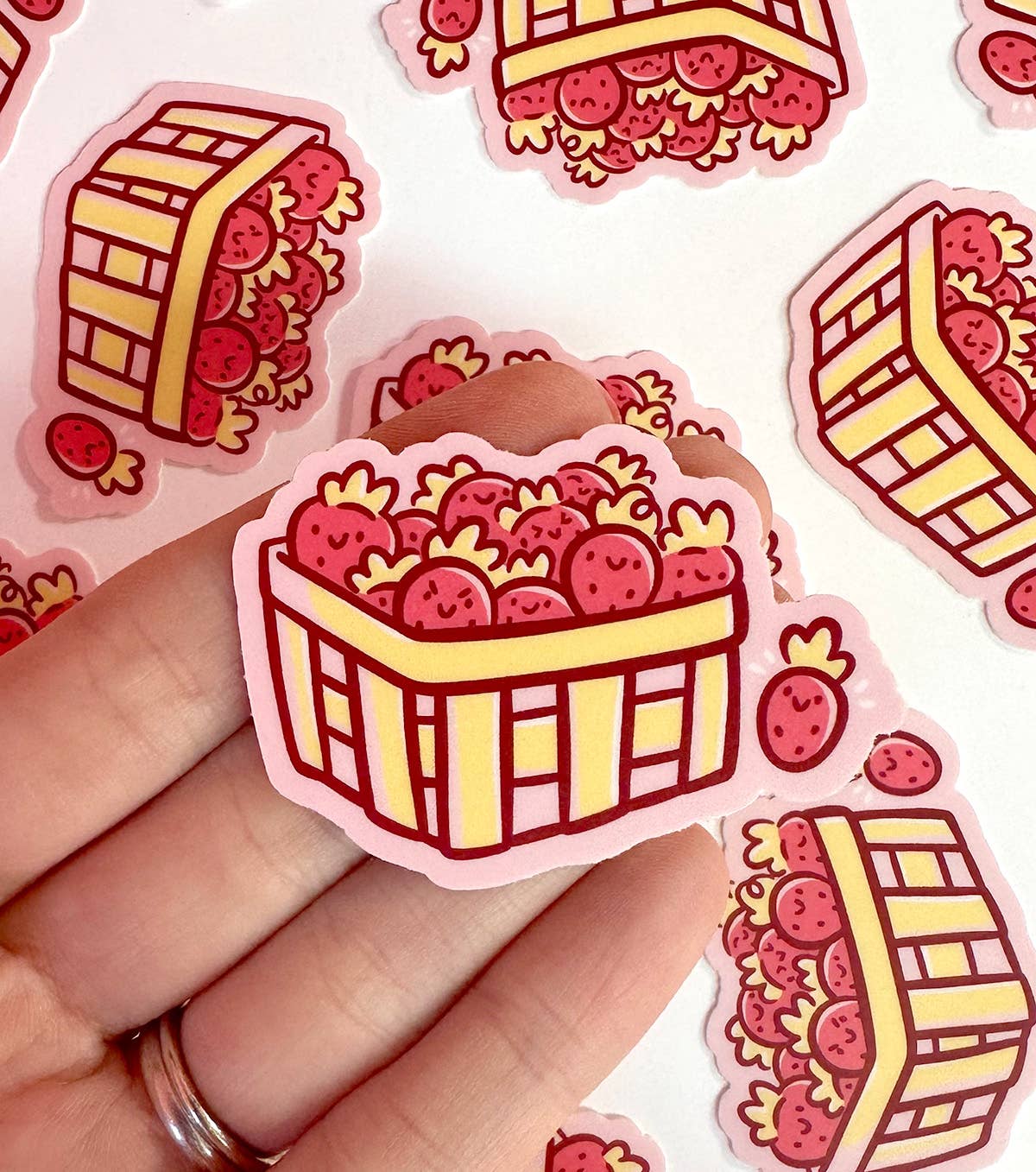 Fresh from the strawberry patch and on its way to adorn a surface near you. Sticker measures approximately 3”x3”, colors may vary from photo. All my stickers are… 🌞 UV protected vinyl to prevent fading 💧 Weatherproof (safe to run through the dishwasher!) 🌳 Printed in the US with a recycled backing paper