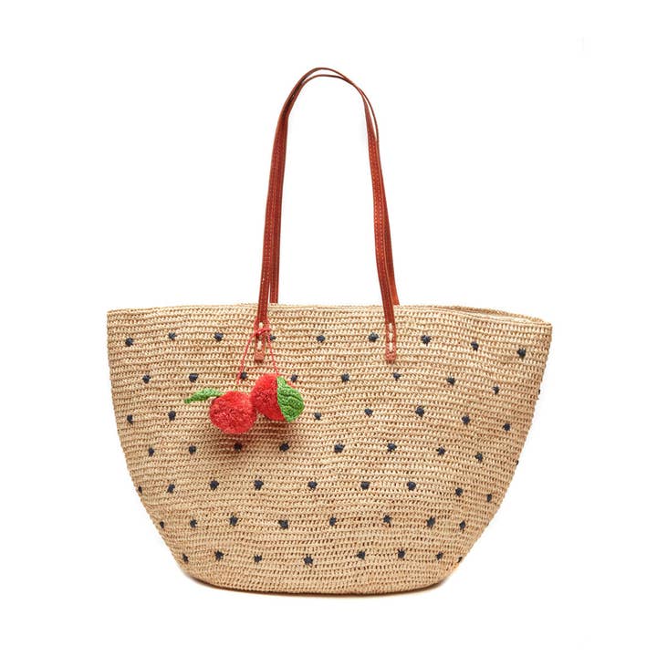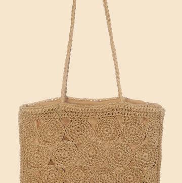 Our Tulum tote features a stunning crochet pattern and juicy colors. Its unlined, open design makes it great for shaking out the sand after trips to the beach and its sturdy handles lend durability for the perfect everyday carryall. * 100% crocheted raffia * Leather handles * 22"W x 8"D x 12"H; 8.5" strap drop - Approximate dimensions, each piece is handmade