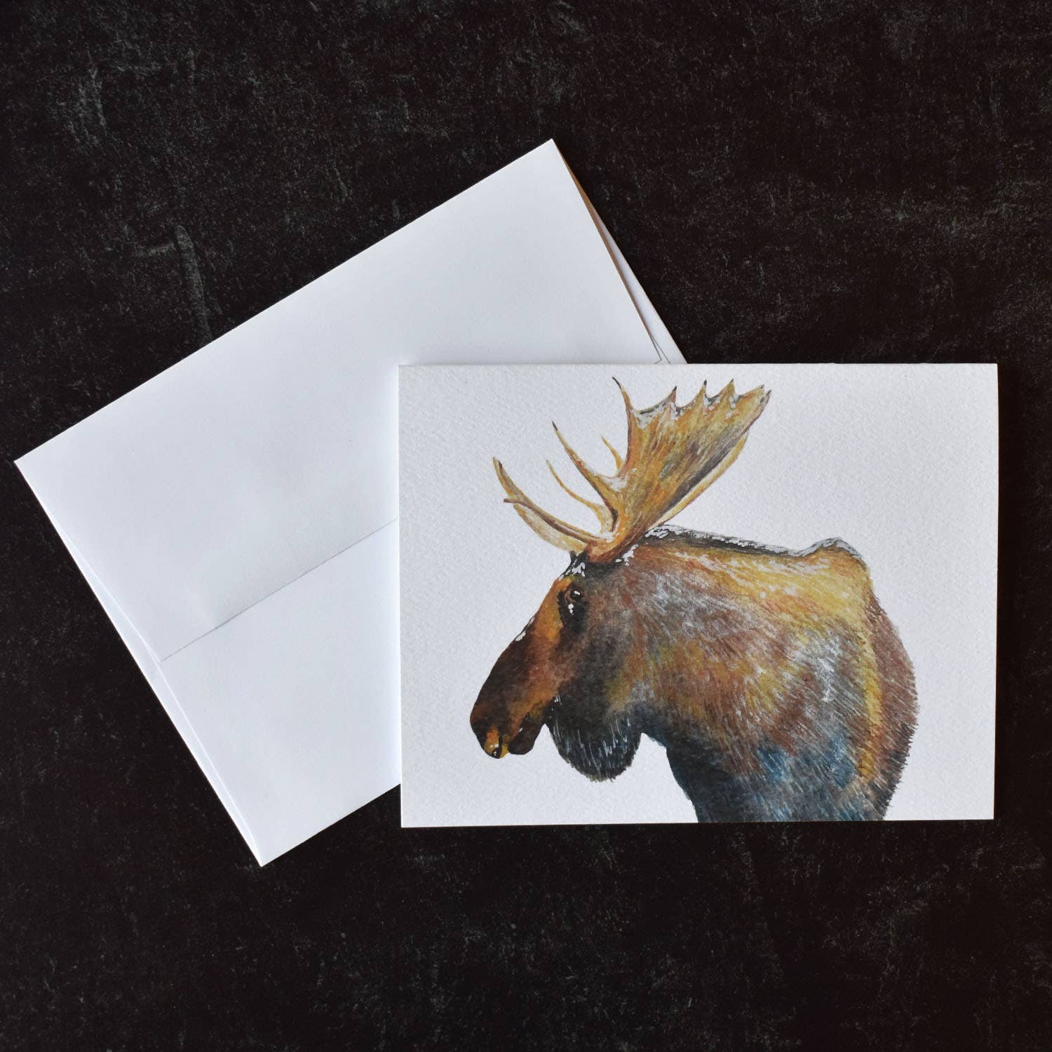 The magnificent moose greeting card is made from the original charcoal drawing of the artist marie-michèle desmarais. Special collaboration for inspiration with great canadian photographers: Julie and eric, wildlife and nature. • black and white illustration, blank inside. • black envelope. • inkjet print of an original charcoal drawing. • artistic quality that permits you to frame it like a print for all kinds of deco projects! • acid-free paper , fsc certified. Size : 4.25 x 5,5. See the official illustration (section majestics) available in sizes :12" x 18" / 30,5 x 45,7 cm20'' x 30'' /50,8 x 76,2 cm24"x34" /60,96 x 86,36 cm. Thank you for choosing le nid atelier's creations!.