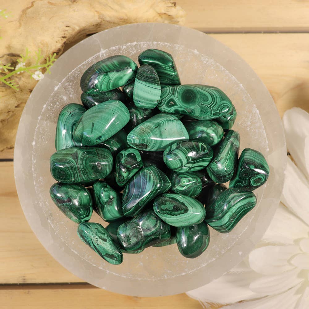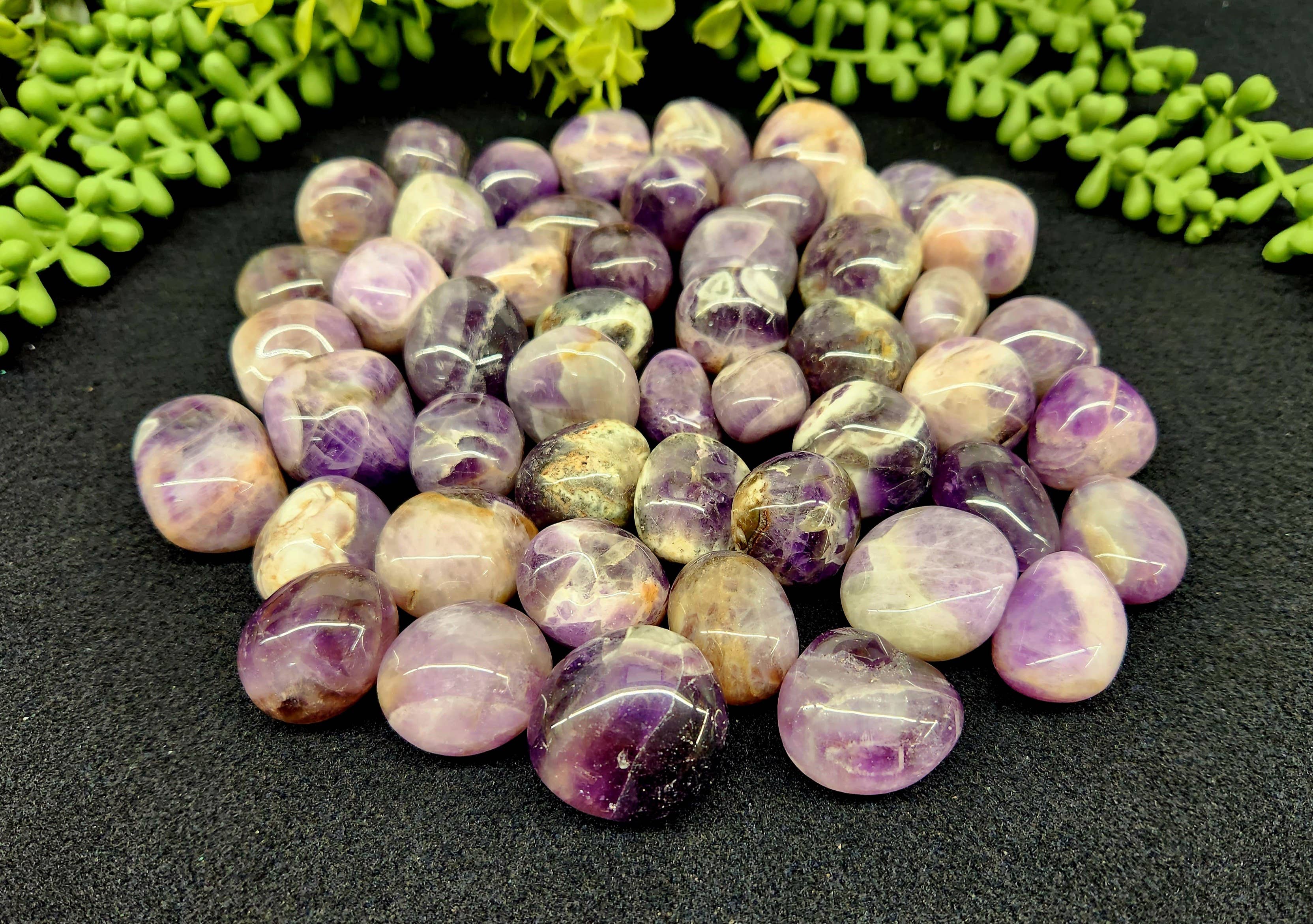 Kambaba Jasper tumbled semi-precious stone in approximately 30-35mm in size. *Sold in approximate 1kg/2.2lbs. increments. *All natural. *Due to the production process and shipping of tumbled stone, it makes it difficult to give a the exact number of tumbled stone per bag. Approximate range of pieces per 1kg bag for our 30-35mm tumbled stone is about 30-45 pieces. *We receive many shipments of tumbled stone every month and we give specific requirements to our suppliers, however occasionally a random larger or smaller stone may be present in your 1kg bag. We do our best to make sure this doesn't happen but a random large or smaller size may be present. This picture is an representation of the type and quality of the gemstone you will be receiving. As you know, there are slight variations due to the natural character of this product.