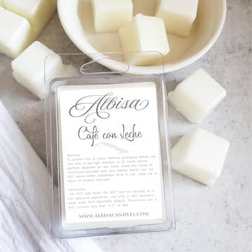 This scent takes you through the aromatic journey of café con Leche. It starts with the unmistakable scent that fills the air with robust bold thick cafecito that first trickles into the cafetera, then brings in the warmed milk and sugar balanced with a pinch of salt. Perfect for any time of day. Our wax melts are perfect for your home, office, or anyplace where lighting a candle may not be an option. Simply break off a cube and place it into an appropriate warmer. As the cube begins to melt it gradually fills your room with a delightful aroma.